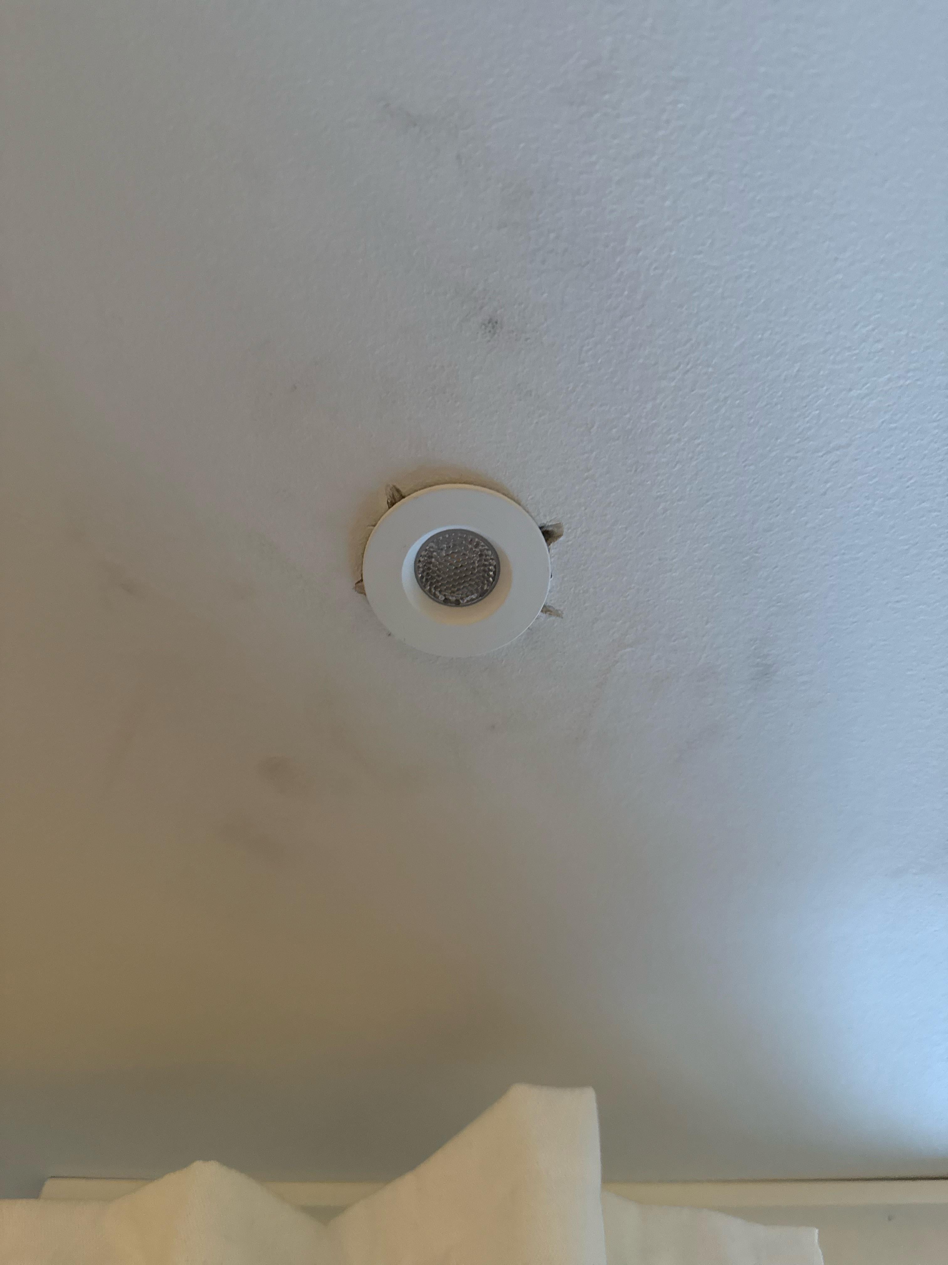 Men så som de har kladdat i taket så kanske det måste målas ändå. För att få bra målat och spacklat så behövs spottarna lossas på igen i alla fall, alternativt låta dem hänga.