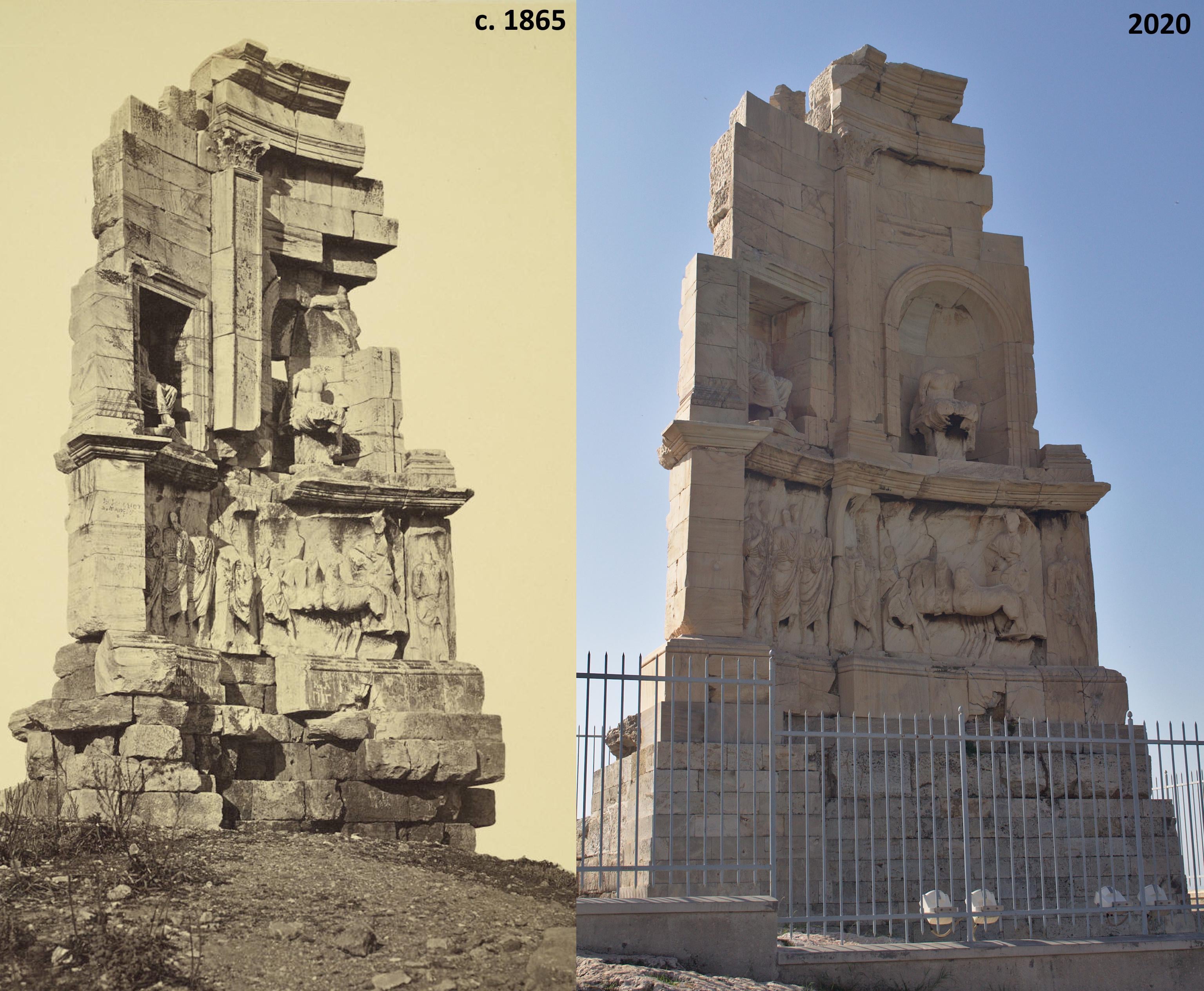 Source of the pictures [here ](https://upload.wikimedia.org/wikipedia/commons/3/36/Monument_of_Philipappos_%283678429383%29.jpg)and [here](https://upload.wikimedia.org/wikipedia/commons/7/70/Athens_-_Philopappos_monument_01.jpg)