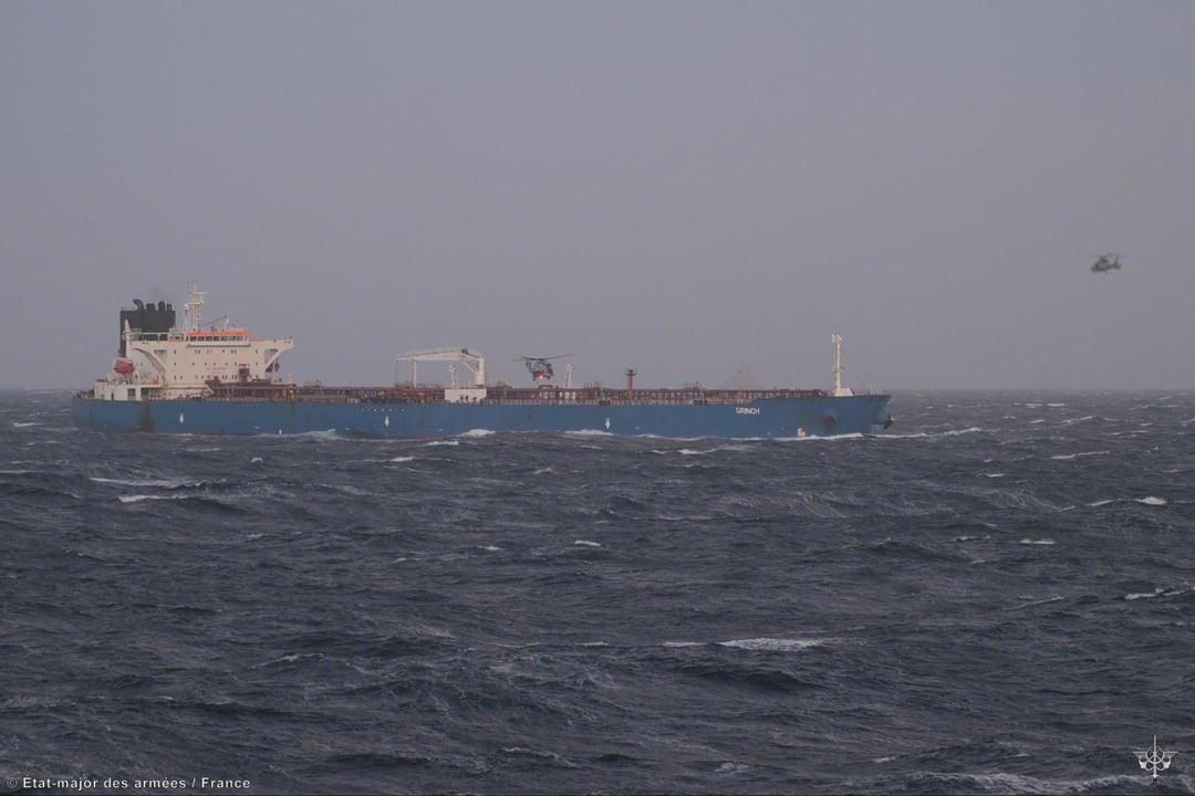 French maritime authorities for the Mediterranean said the ship, the Grinch, is suspected of operating with a false flag.