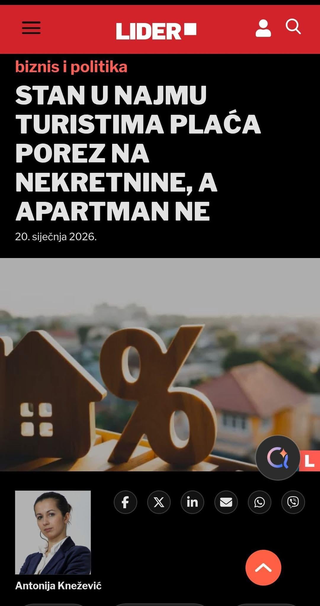 Ako imaš stan i iznajmljuješ ga za turističke svrhe (kratkoročno iznajmljivanje) – plaćaš porez na nekretnine.
