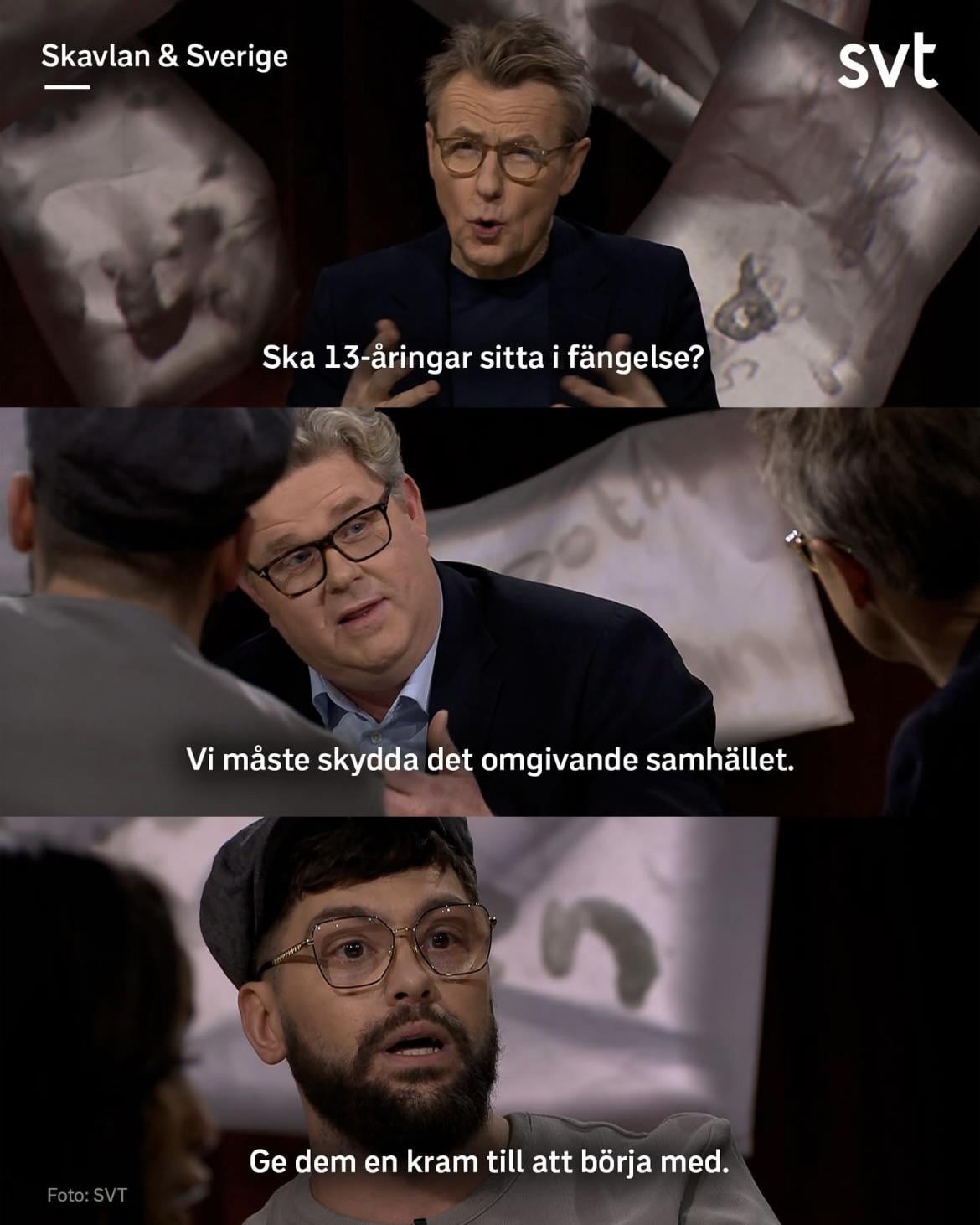Inte nog med att ni vill kasta in barn i fängelse istället för att skydda dom, men hur hade ni tänkt att det skulle göra någon bra förändring när fängelser redan är överfulla? Och tänker ni att det blir bättre att barn träffar vuxna kriminella i fängelset? Vård och skydd är vad barn behöver, inte förvaring och straff. Men Sverige älskar ju att förstöra landet mer istället för att lösa problem med en humanisk syn och långsiktiga lösningar och ett öppet sinne, inte samma gammalmodiga syn som redan är bevisad inte fungerar.
