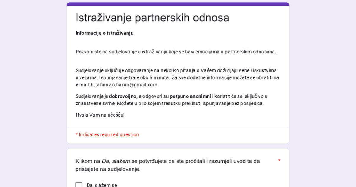 Poziv za sudjelovanje u istraživanju o emocijama i rodnim ulogama u vezama