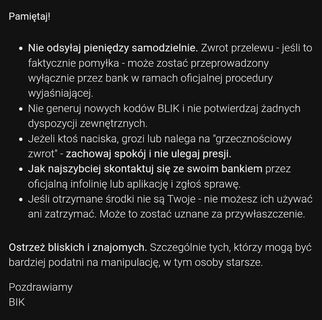Mniejszy byłby problem gdyby w aplikacjach bankowych/blik była łatwa opcja zwrotu/odmowy przyjęcia przelewu.