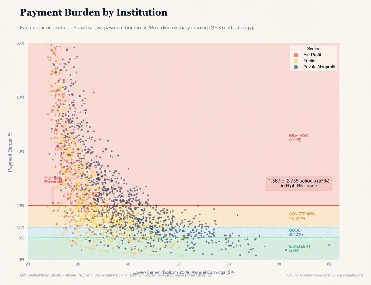 1. Data is from the College Scorecard, April 2024 release. Made with Matplotlib (Python).