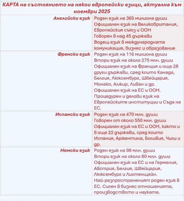Karte des Status einiger europäischer Sprachen, mit Informationen vom November 2025