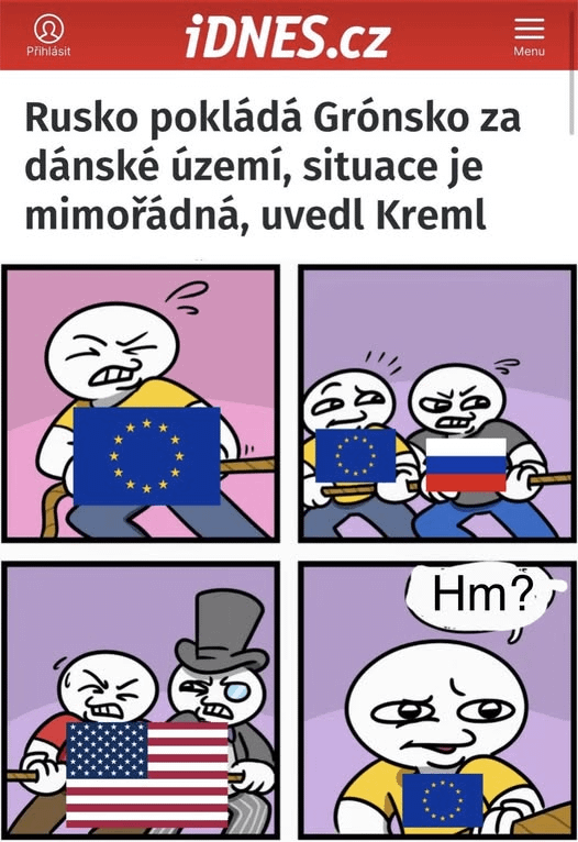 Vzhledem k tomu, že tam chce Trump stavět vojenské základny, pak to bude mít přes pól do Ruska co by kamenem dohodil, tak ještě aby to Rusko schvalovalo… to že je to čistou shodou okolností ve společném politickém diskurzu s Evropou je v tomhle případě nepodstatné.