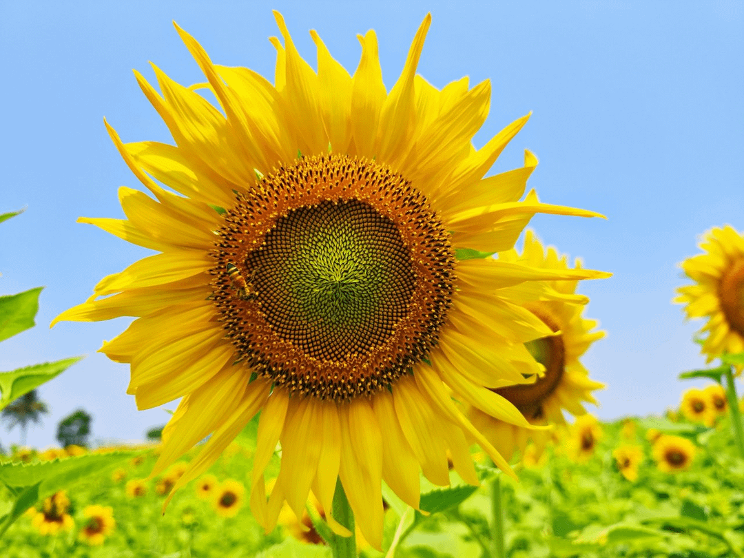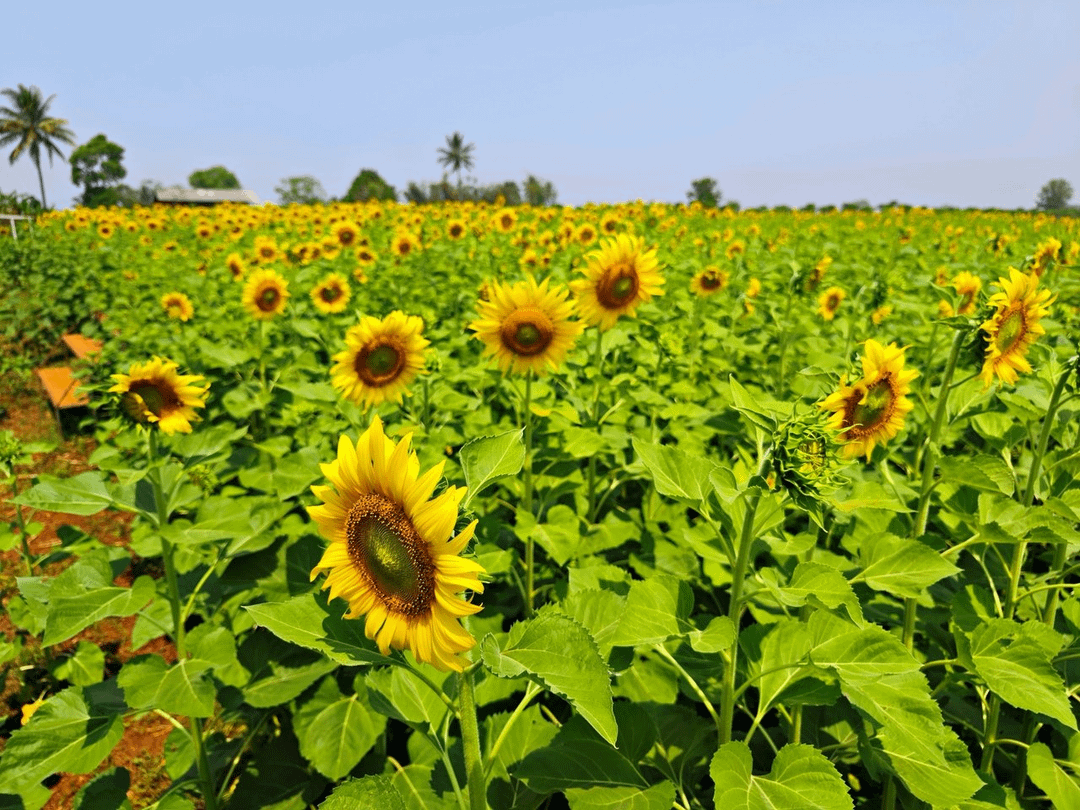 Bei RaiAma erstrecken sich die Sonnenblumenfelder so weit das Auge reicht, ein Meer aus Gelb erstreckt sich bis zum Horizont. Diese Sonnenblumen sind außergewöhnlich groß und erreichen eine Höhe von über 160 Zentimetern. Um ihre Pracht einzufangen, stellt RaiAma den Besuchern Treppen zur Verfügung, über die sie Fotos aus der Vogelperspektive machen können, sodass jede prächtige Blüte sichtbar ist.