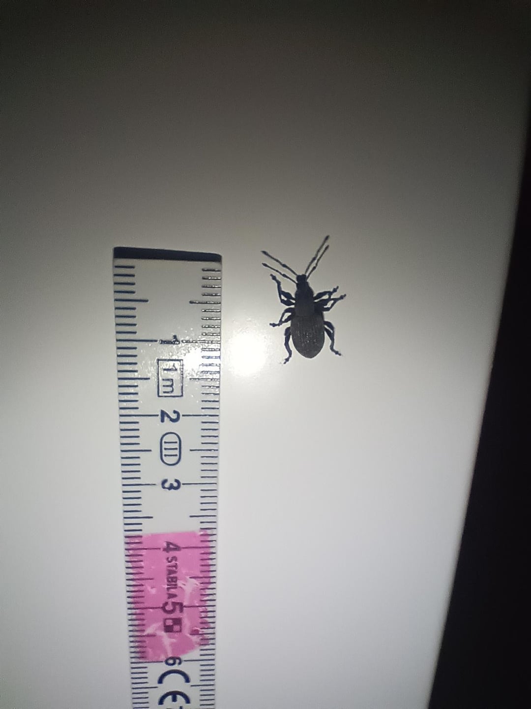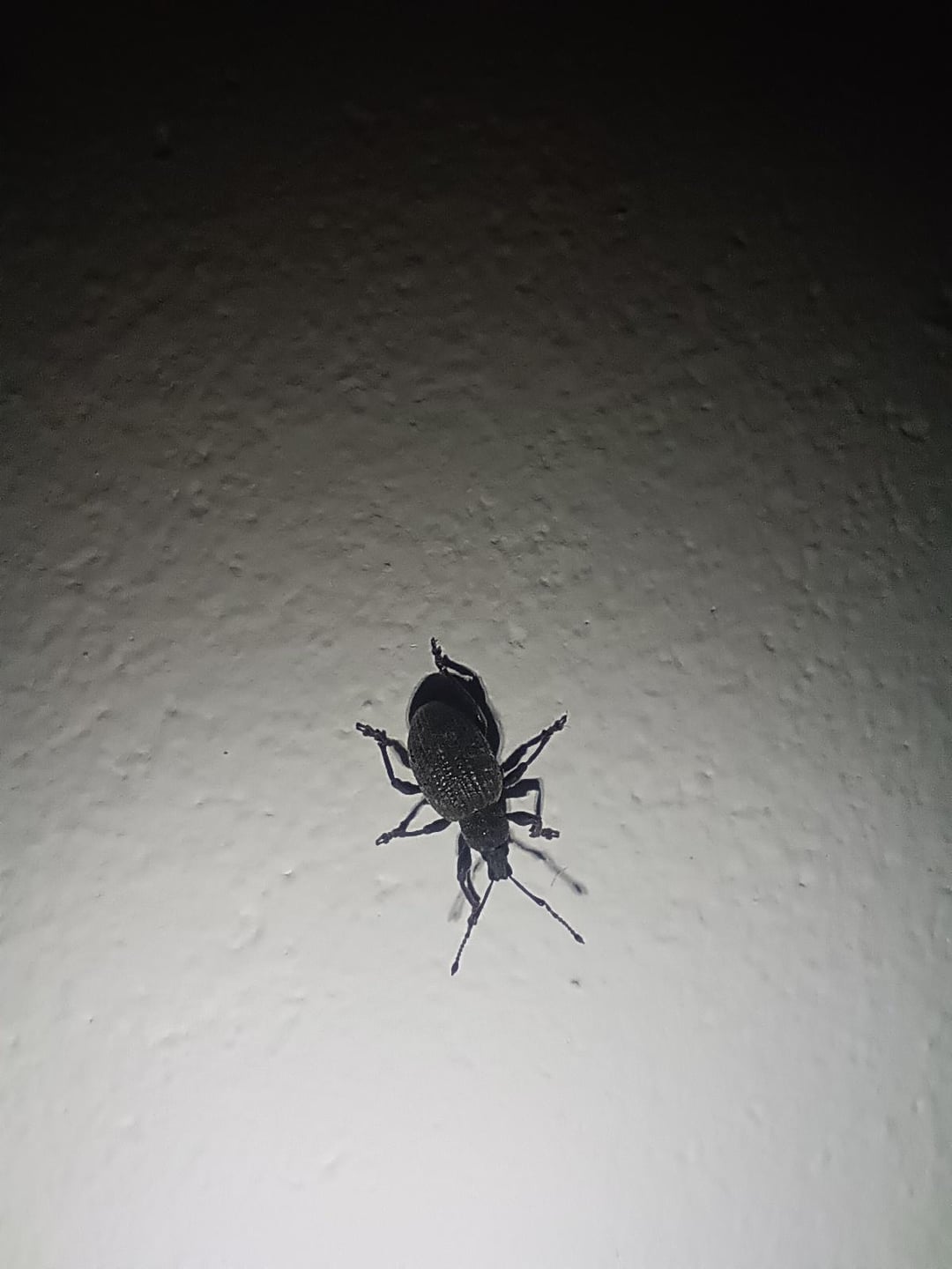 Würde sagen, es ist ein Dickmaulrüssler. Sind eigentlich eher im Garten zu finden und fressen dort nachts die Pflanzen an. Können sich wegen Kälte auch Mal Haus verstecken.