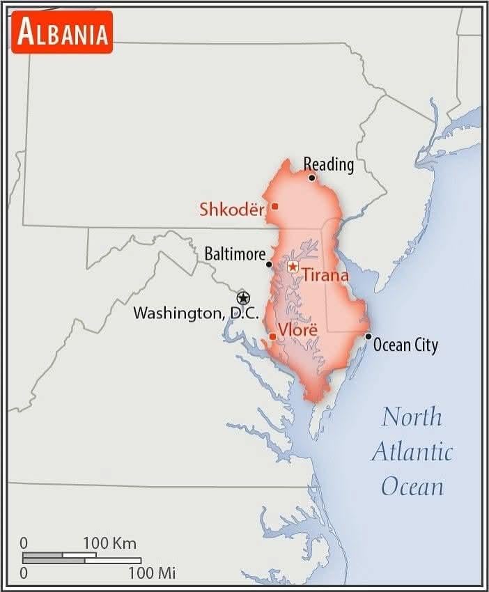Of all the parts of the USA to overlay Albania, why the fucking Chesapeake bay?