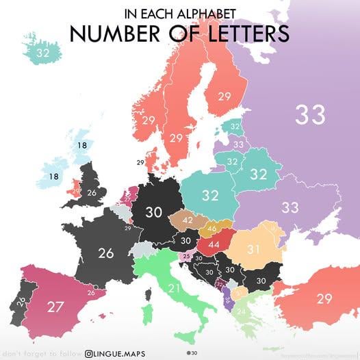 In addition to the regular 26 Portugal has á à â ã é è ê ó ò õ í ç so that’s 38.