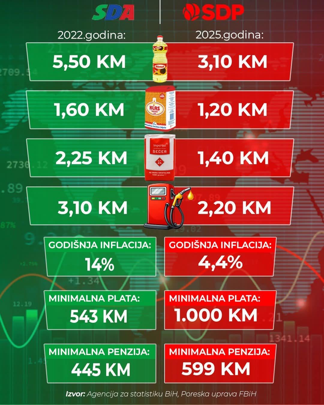 Godine 2025. inflacija je izravno rezultat ekonomskih politika Vlade FBiH. Zemlje Evrope imaju normalne umjerene stope inflacije, dok smo mi u samom vrhu. Ne samo da nismo uradili dovoljno da građanima olakšamo novi val inflacije, mi smo ga izazvali.