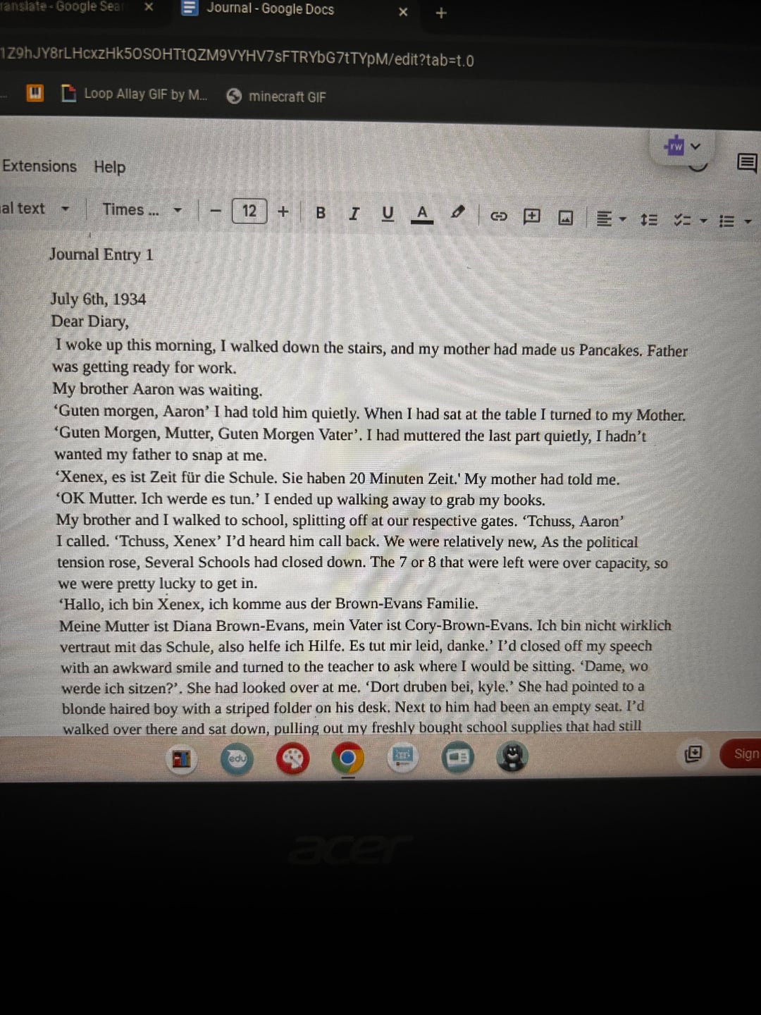>It wasn’t hard to tell we had come from America, but we were mostly german, while we weren’t born here, ot was our blood.