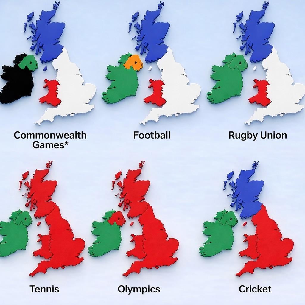 This took me a while to figure out. I think it’s trying to show for each sport which countries in the British Isles has a team at International level. It’s not easy information to present on a map. It’s also misleading. For example in Rugby Union Ireland, England, Scotland, and Wales have Teams. They also compete s the British Lions.