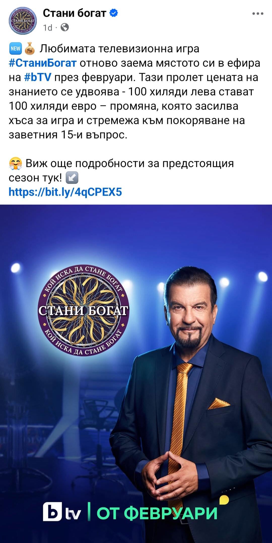 В оригинал предаването се казва “Who wants to be a millionaire” ама скока до €1,000,000 явно ще им дойде в повече