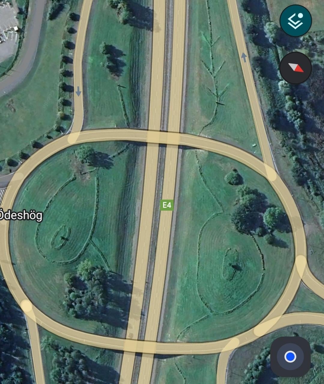 Bin auf der E4 gefahren und habe in der Nähe von McDonalds Ödeshög 58.2287109, 14.6699543 etwas gesehen, das wie eine Rune aussah, und als ich auf Google Maps ging, sah ich, dass überall mehrere Stücke und auch kleinere Steine wie Pfeile verteilt waren