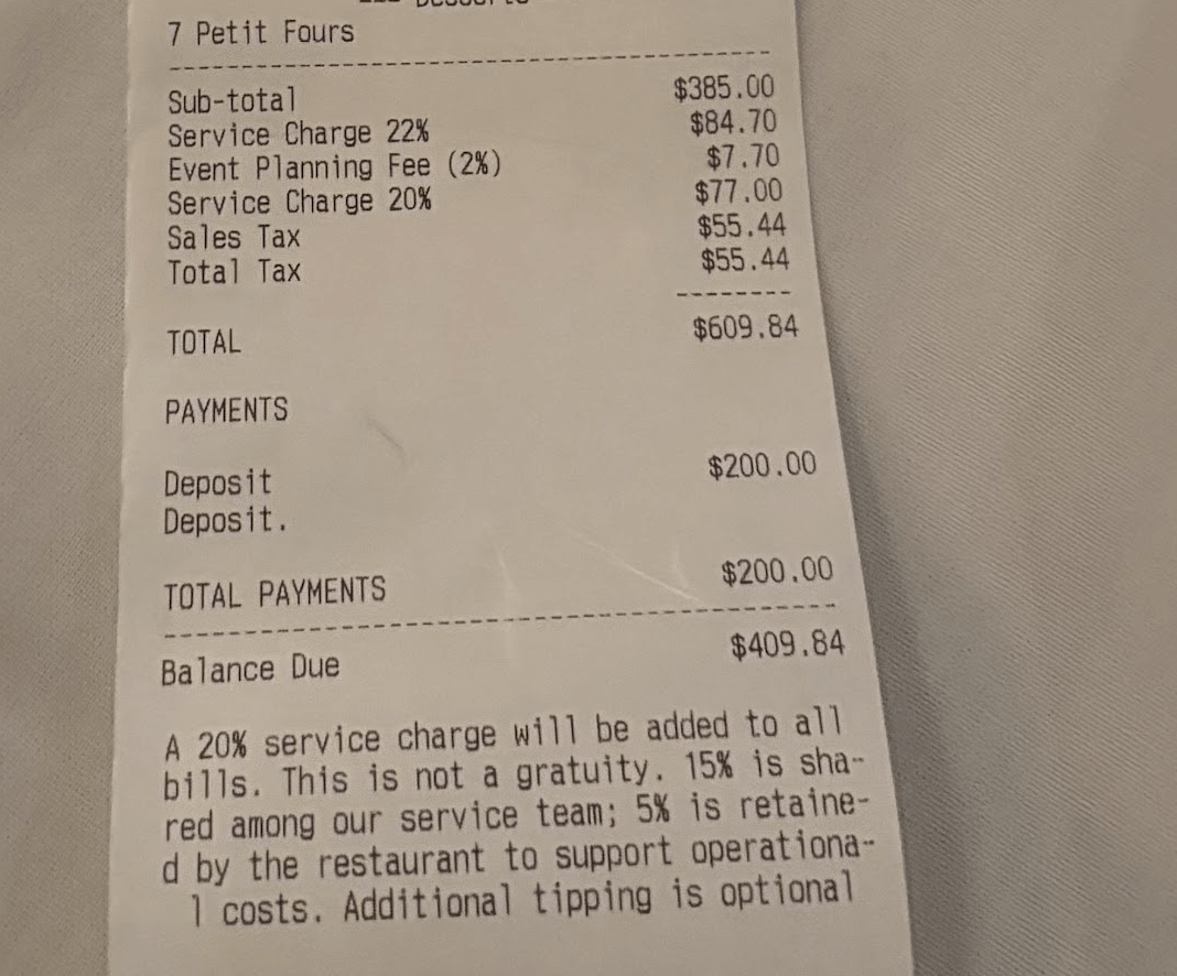 Me encanta lo de que van a agregar el 20% de la ~~propina y beneficio del restaurante~~ „service charge“ cuando te dan el ticket, no antes.