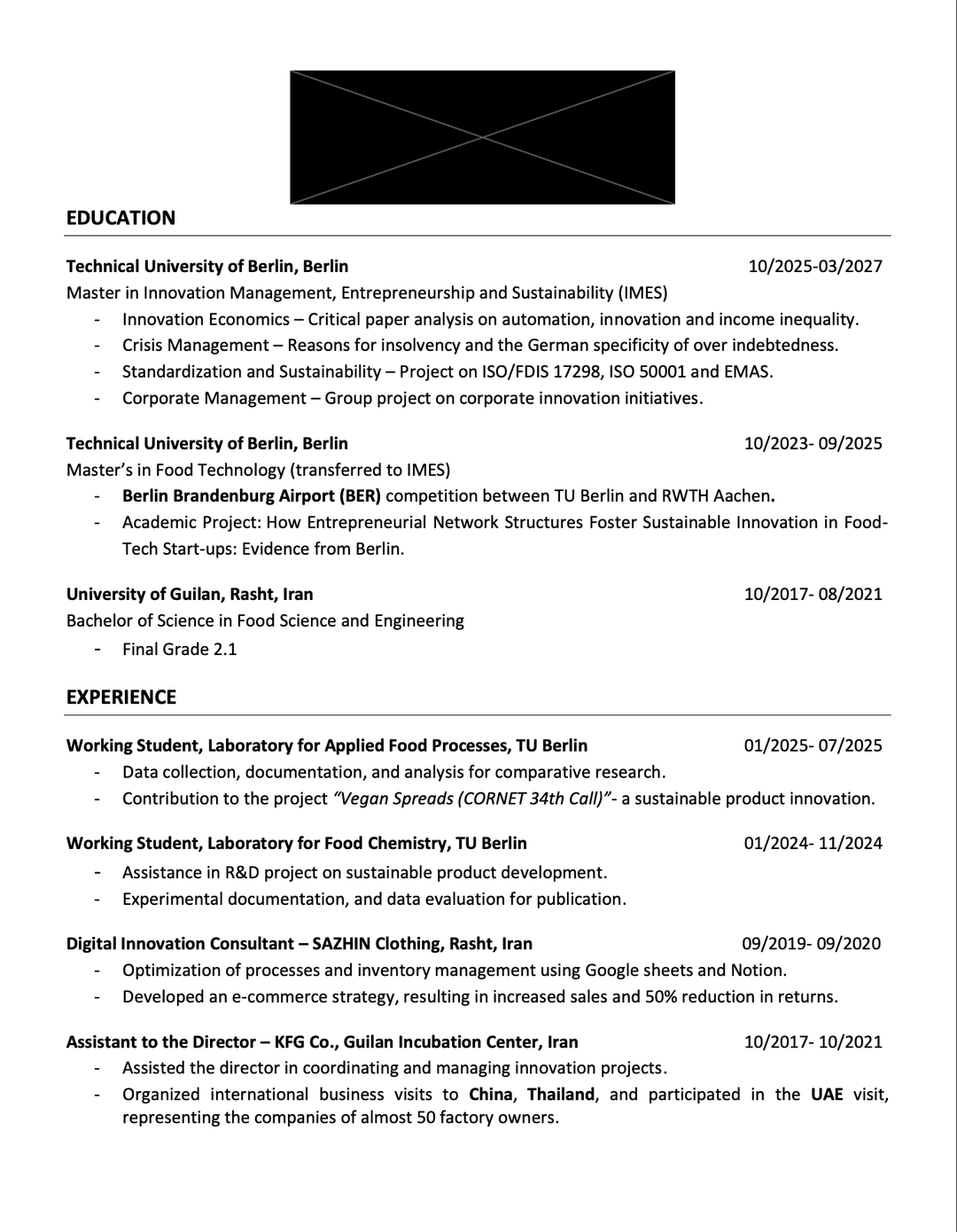 Same for the Tech master. No one has an idea what te BER hcallenge is. Make a full bullet point about. Also make it clearer that you did not finish your degrees yet. This way it looks like you have the Food Tech one, since „transferring“ is not a thing in Germany.