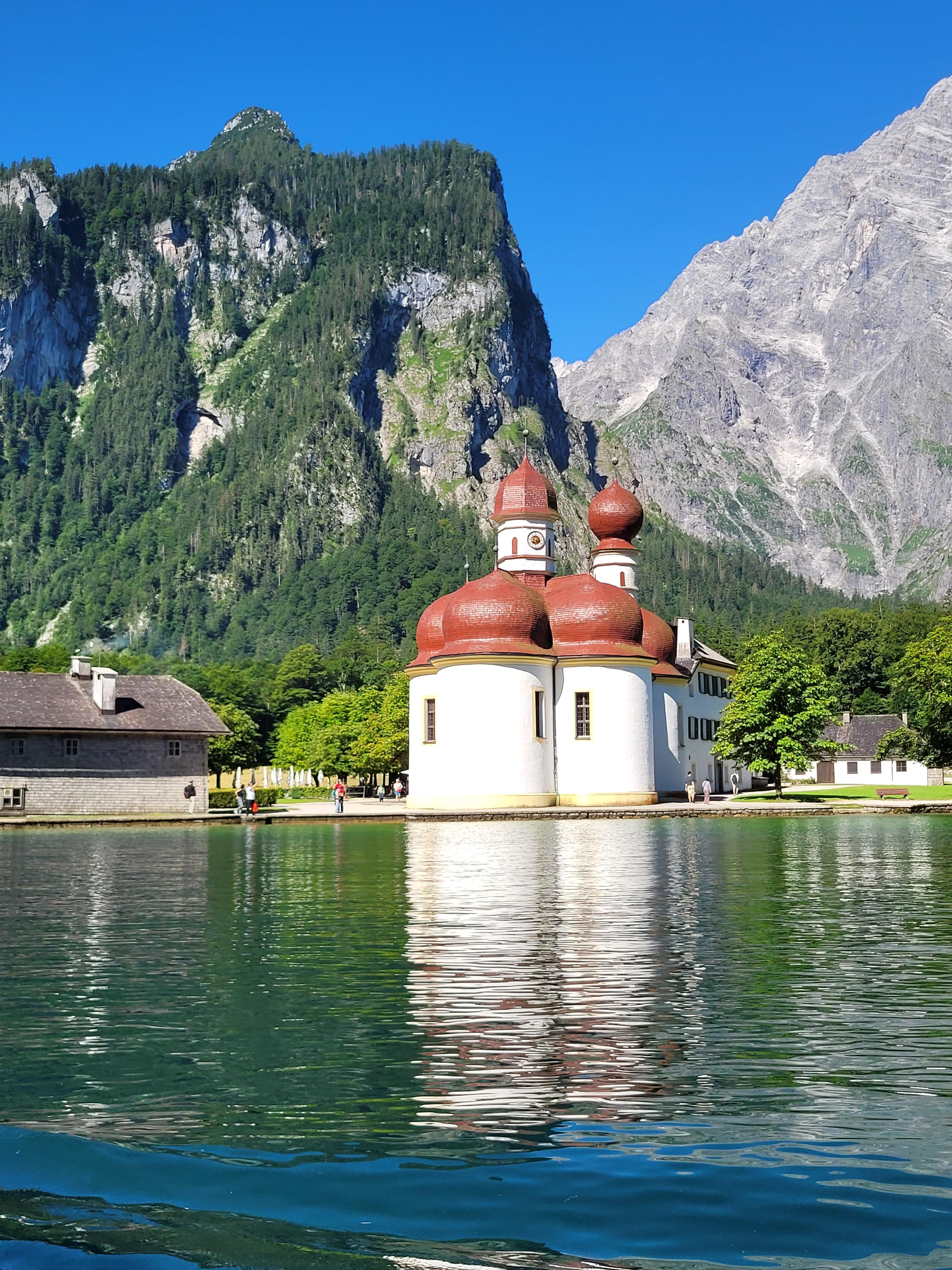 St. Bartholomew’s pilgrimage church on the Hirschau peninsula, on the western shore of Lake Königssee, within Berchtesgaden National Park [OC]
