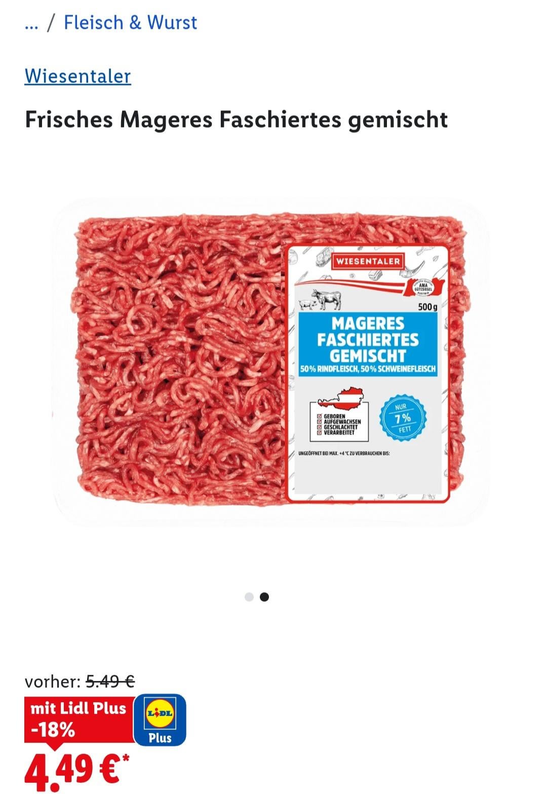 auf deine Frage, ich hab jetzt leider keine preise beim Lidl gefunden, aber mal das Faschierte vom Spar hergenommen mit Kilopreis. Schwein 5,99€ Rind 11,99€