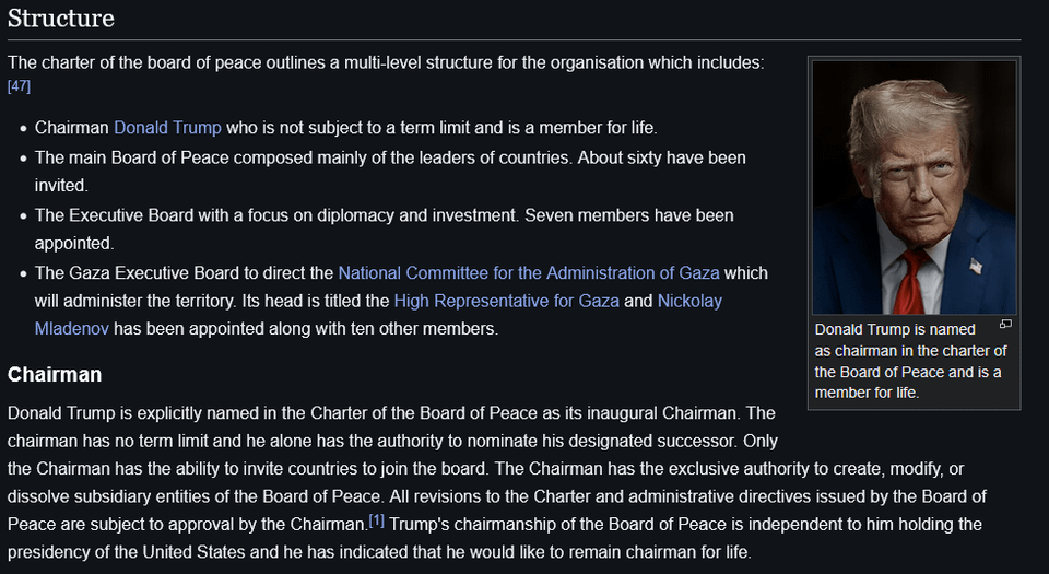 3. That board is an absolute joke. Everything can be vetoed by lifetime chairman orange baboon. It’s a club of autocracies, crazy dictatorships and Trump sycophants, and it would be an absolute betrayal of everthing we hold dear. Multilateralism, international cooperation and the many UN institutions we are currently hosting in our country.