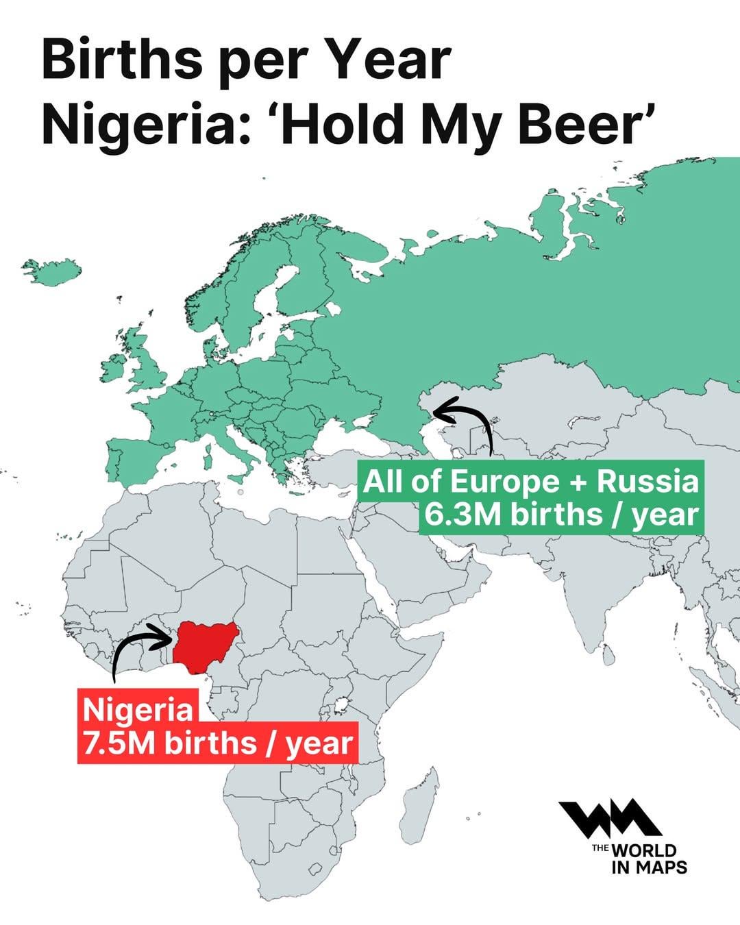There’s a lot of fear over low birthrates but in my opinion they will even out eventually. We don’t need the population to go up forever. Meanwhile, Nigeria is cramped and poor, and their high birthrate will be very bad for them