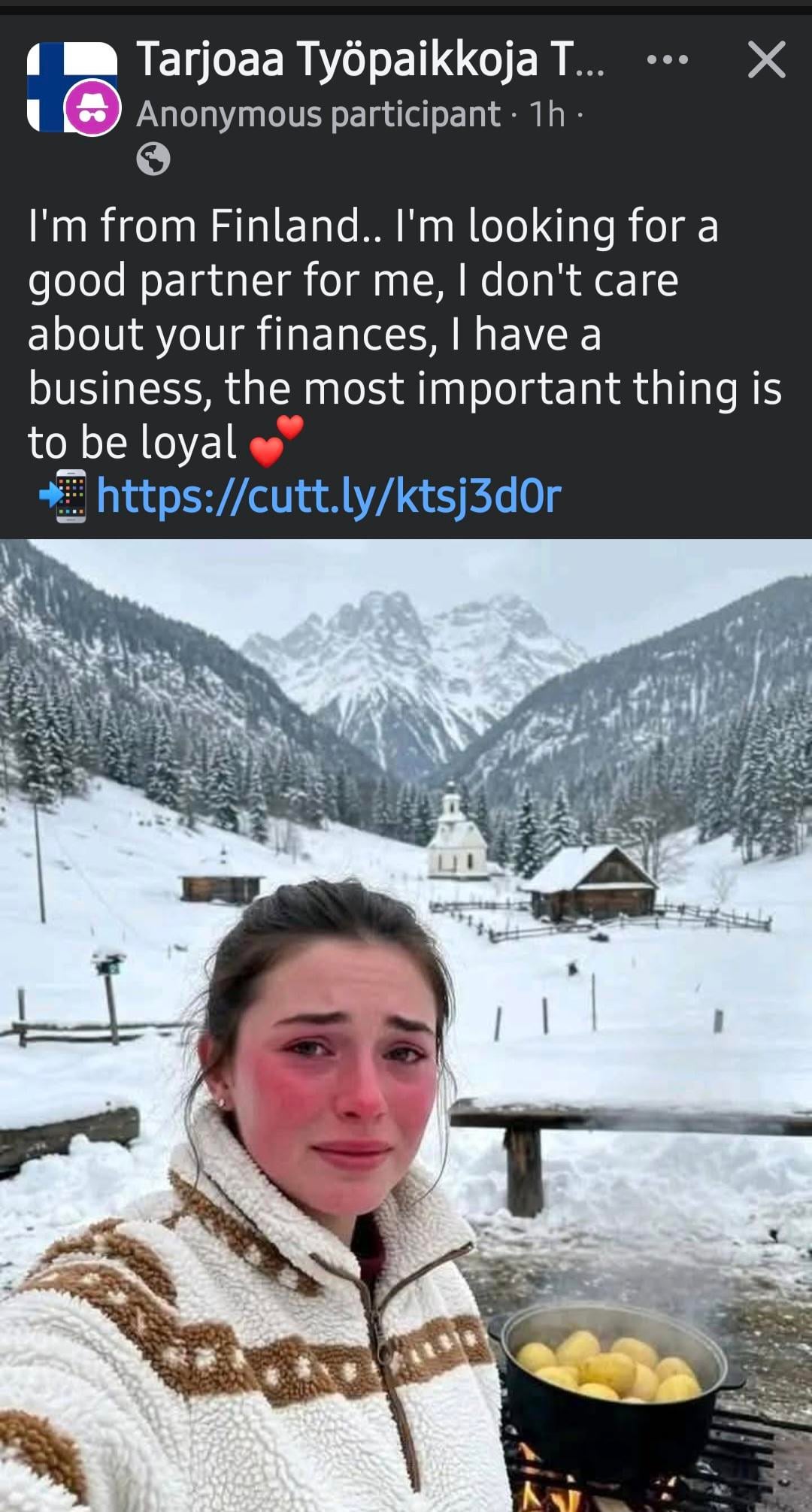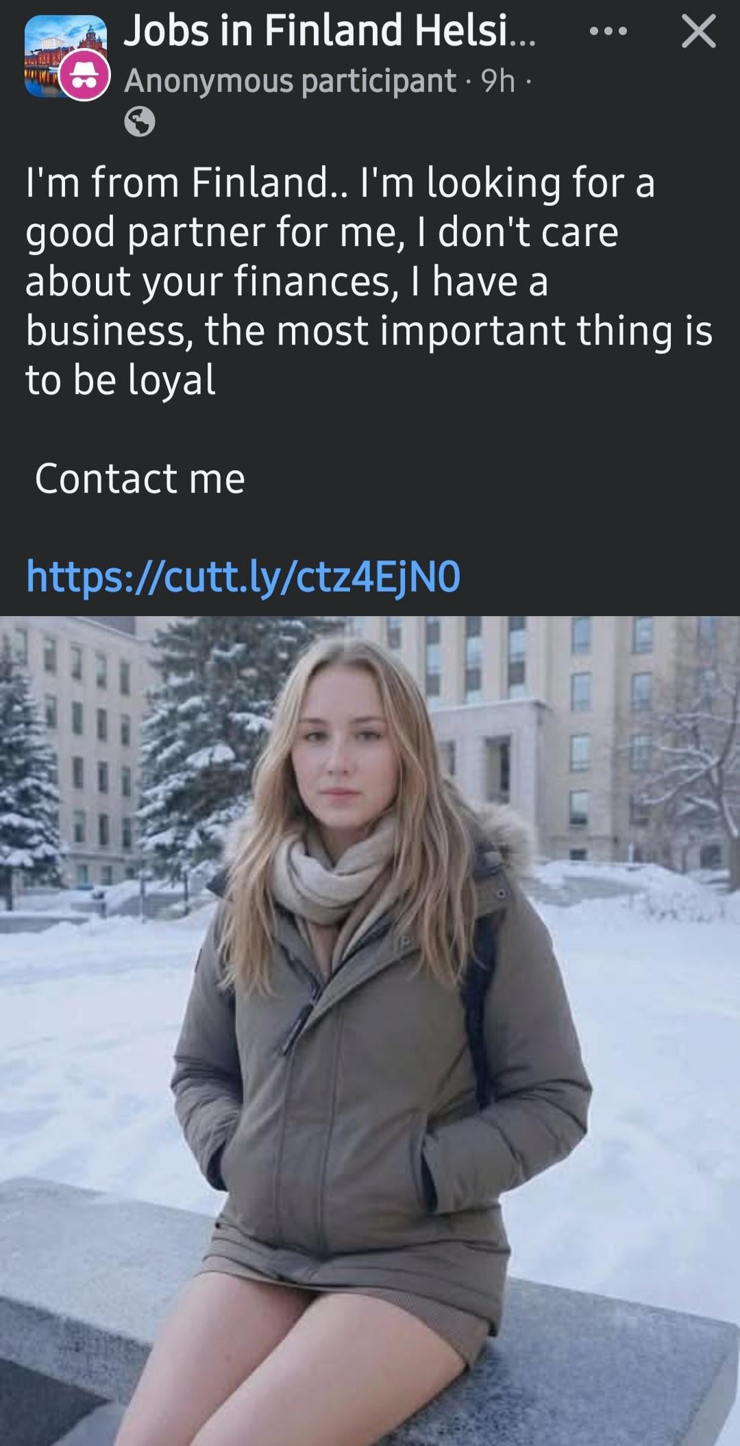 Ich weiß, dass dies (hoffentlich) 99 % von Ihnen offensichtlich sein wird, aber für den Fall, dass dies nicht der Fall ist – nein, diese Beiträge von "Finnische Frauen" sind nicht real.