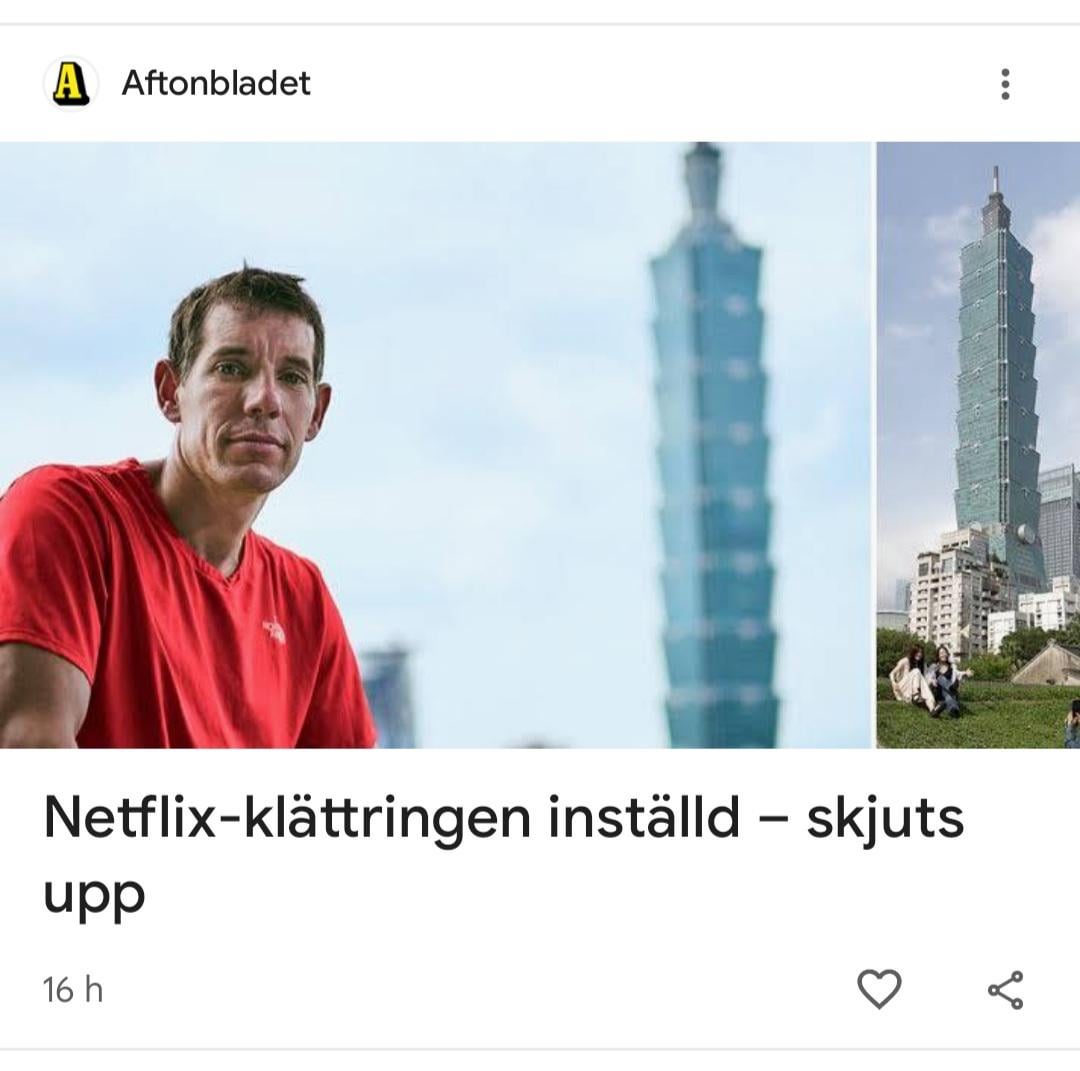 Han klättrade tydligen för jag såg videon på svt. 508 meter utan livlina. Vilken dåre.