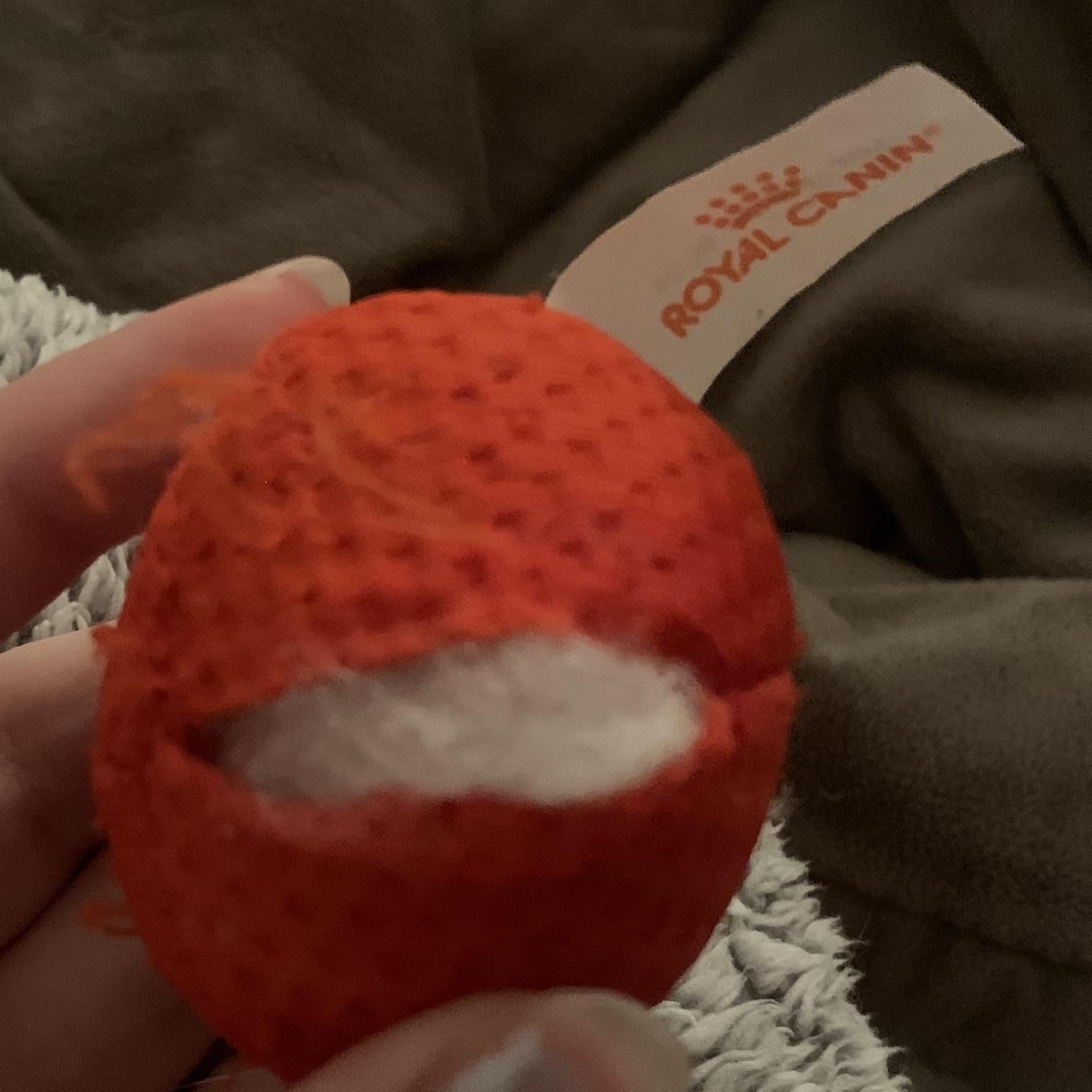 Ich habe Anfang Dezember eine Katze adoptiert und sie hat diesen roten Stoffball von Royal Canin vom Katzenheim bekommen. Es ist ihr Lieblingsspielzeug und wie Sie sehen können, hat sie so viel damit gespielt, dass es kaputt ging. Ich denke, ich kann es zusammennähen, frage mich aber, ob jemand weiß, wo ich mehr kaufen kann? Beim Googeln nicht aufgetaucht!