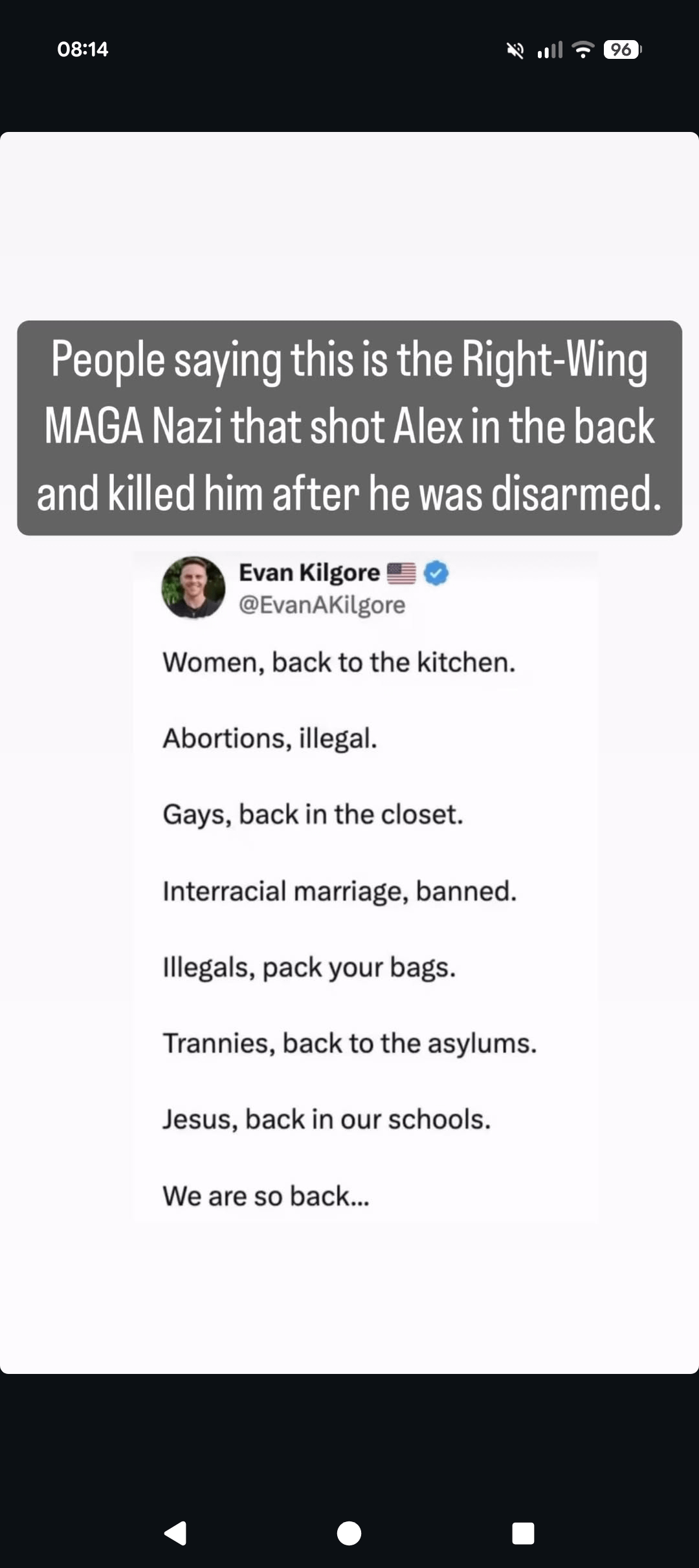 1. As we witness multiple executions by federal agents, the internet is doing its work to dig up info on the murderers. Unsurprisingly, the main suspect has an online history of white supremacist rhetoric, to put it lightly. Their day will come.