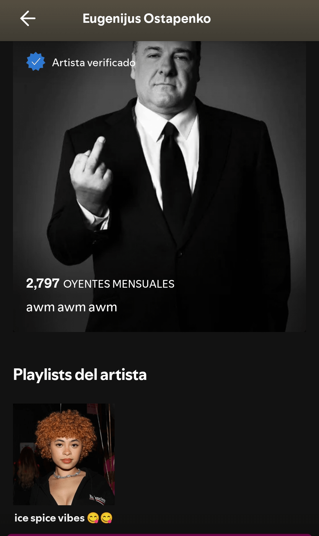 Hallo, ich möchte meinen Beitrag einleiten und sagen, dass ich kein Litauer bin und die Sprache nicht spreche. Vor fünf Jahren bin ich über diesen Typen gestolpert und ich mag ein paar Lieder von ihm, also habe ich ein bisschen recherchiert, aber aufgrund der Sprachbarriere nicht viel herausgefunden, aber ich weiß, dass er gestorben ist und dass er Fahrräder mag. Gestern habe ich seine Spotify-Seite besucht, aber sie war verunstaltet. Was ist damit los? Hasst ihr ihn? Warum mochte er Fahrräder so sehr? Warum sollte jemand sein Spotify kapern? Ich hoffe, ich verstoße nicht gegen irgendwelche Regeln, denn ich möchte wirklich hundertprozentig und ernsthaft etwas über diesen Kerl wissen.