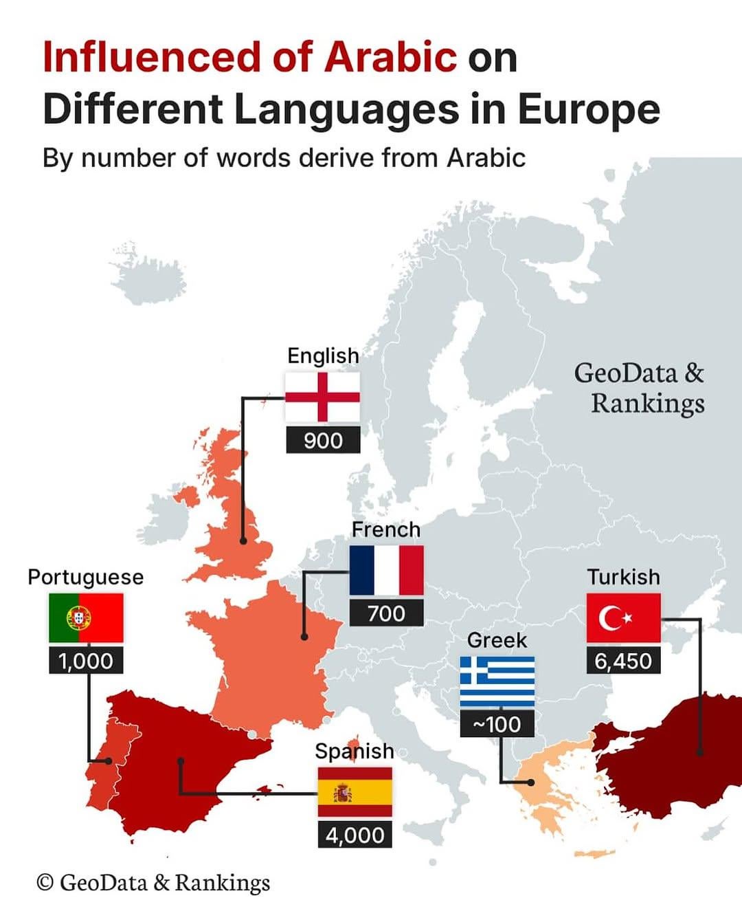 Oh damn so Portugal that was occupied by the Moors only has 100 more than English that was never occupied? I know that only the South of Portugal had serious occupation but still