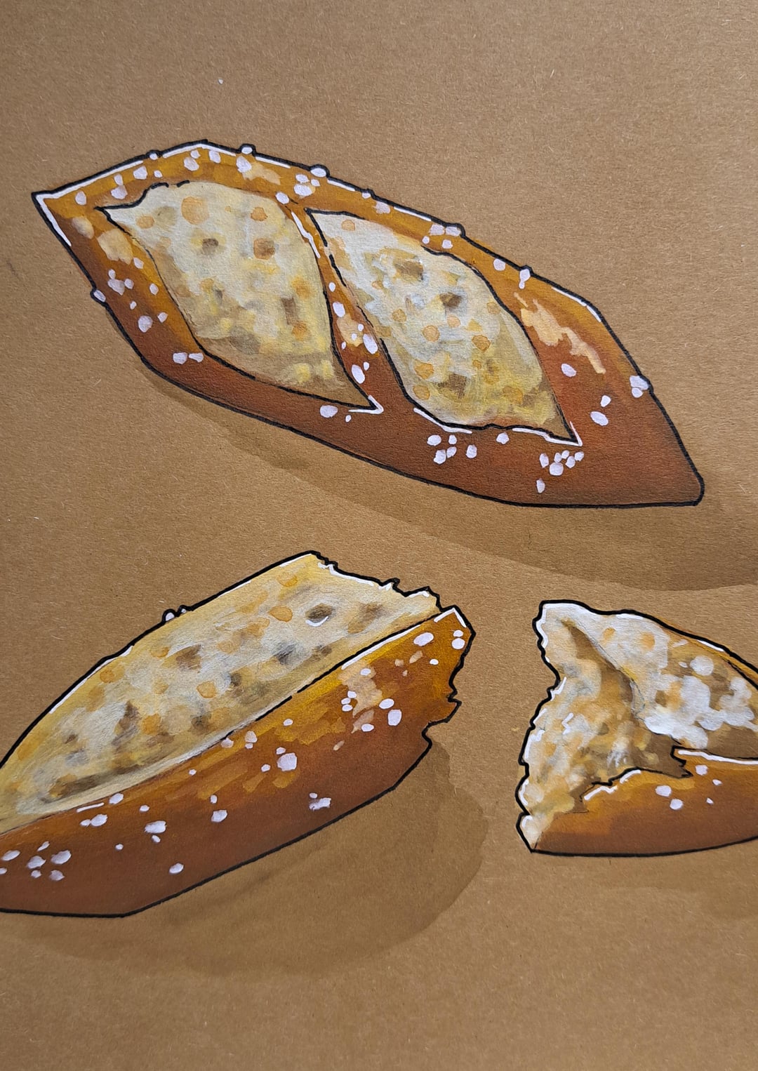 Ich bin in der Küche leider eher eine Gefahrenquelle für meine Mitmenschen, und weniger schöpferisch unterwegs. Also zeichne ich Backwaren lieber.