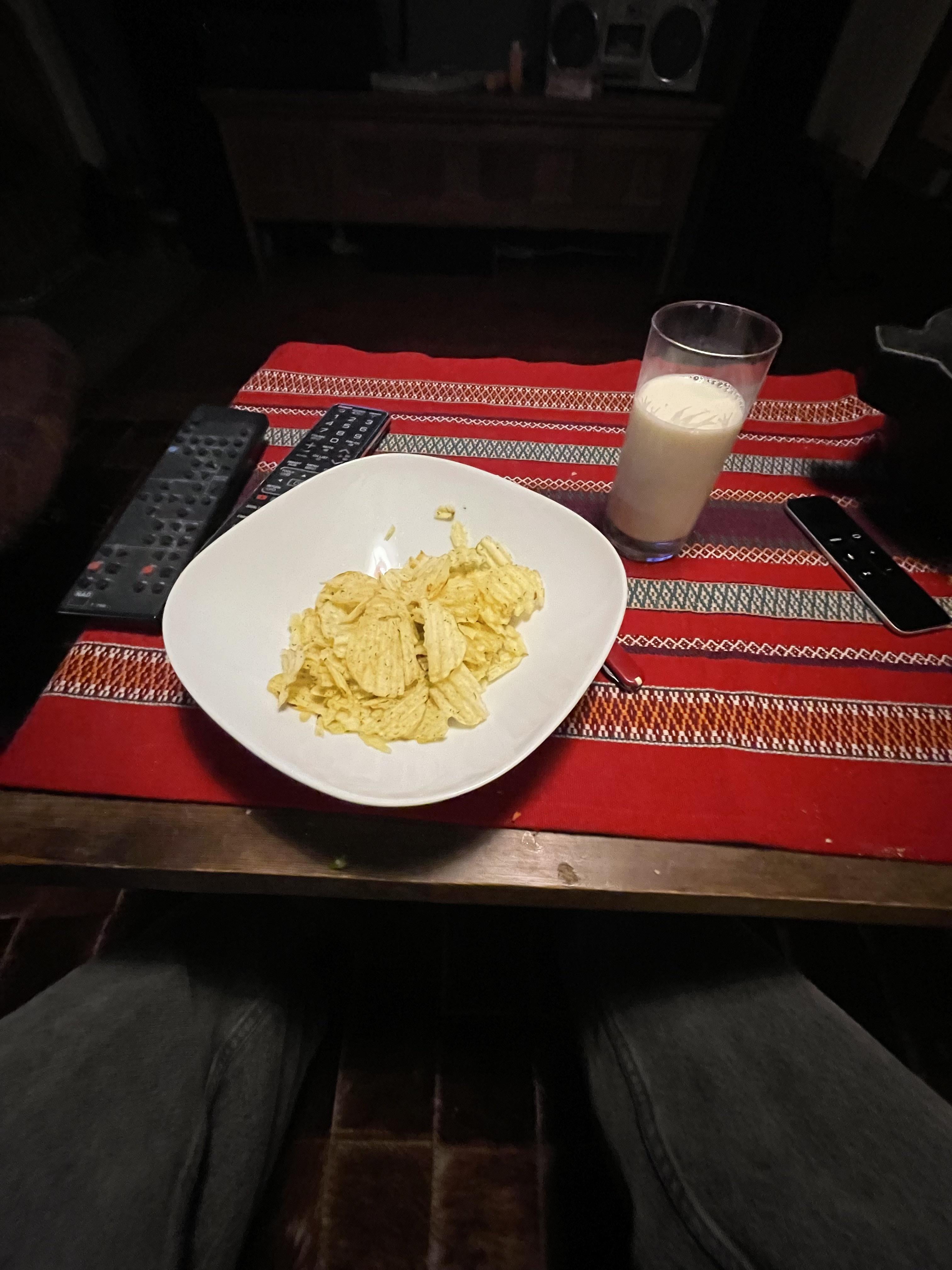 Chips och ett glas mjölk? Galen kombo, men du gör du.