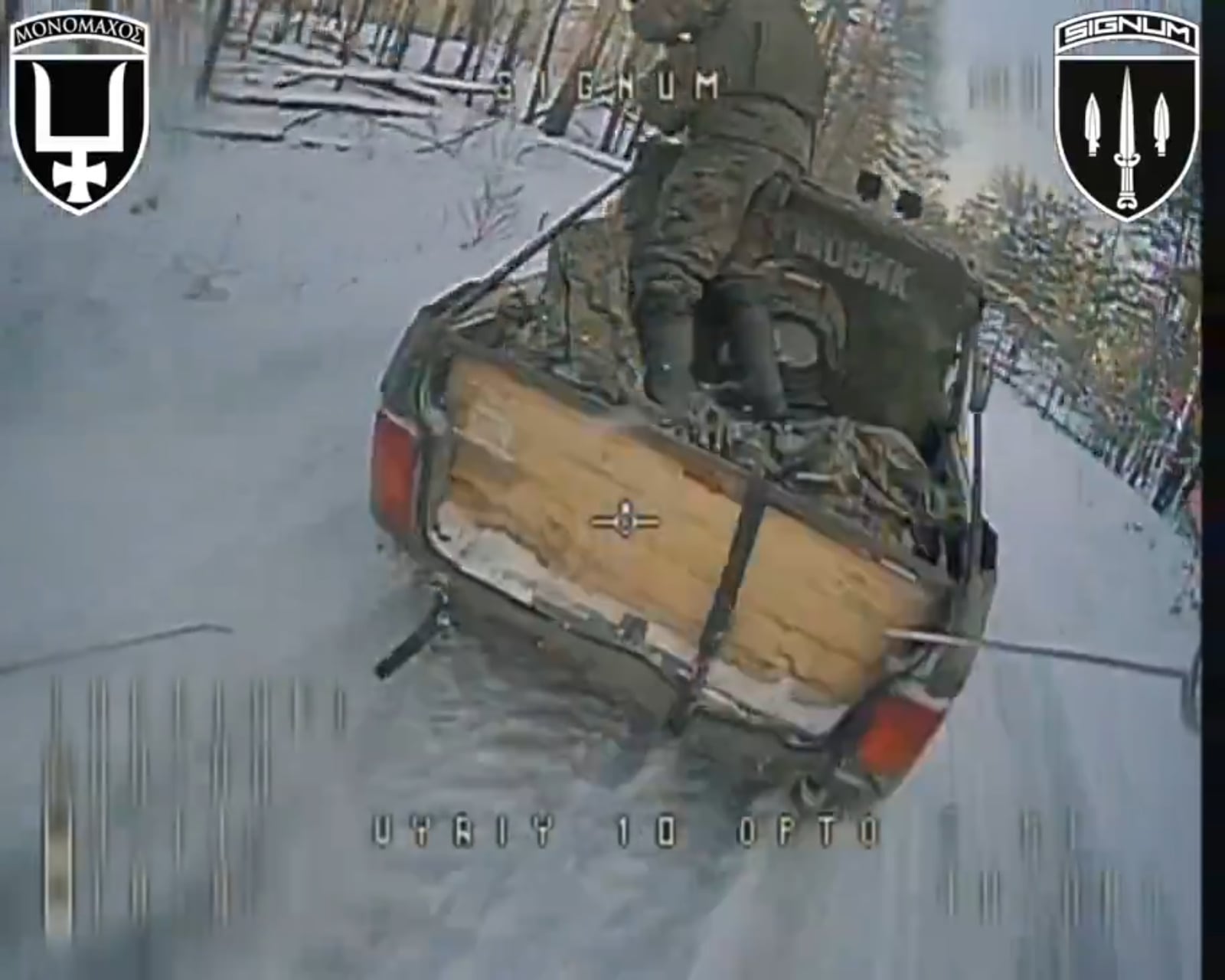 "Sturmtruppler-Soldaten" in einem Anhänger mit feurigem Finale 📍Lyman-Richtung ▪️Während der regulären Patrouille bemerken die Piloten des SIGNUM-Bataillons eine Bewegung: einen feindlichen Pickup, einen Insassen in einem Anhänger. Wahrscheinlich — Rotation des Personals in Positionen.