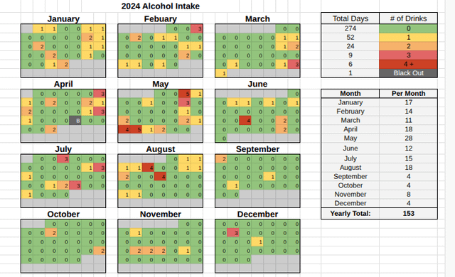 You didn’t count drinks for the blackout days in your monthly and yearly totals.