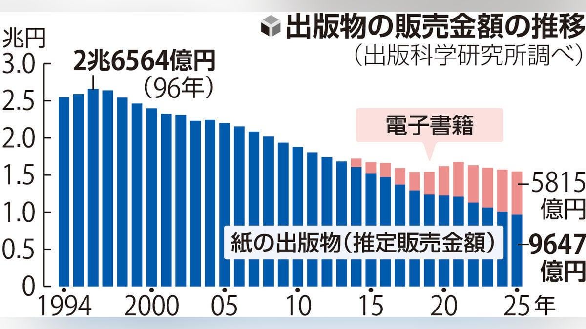 Das Institute of Publishing Science gab am 26. bekannt, dass der geschätzte Umsatz mit gedruckten Büchern und Zeitschriften im Jahr 2025 964,7 Milliarden Yen betragen wird, was einem Rückgang von 4,1 % gegenüber dem Vorjahr entspricht und zum ersten Mal seit 50 Jahren seit 1975 unter 1 Billion Yen fällt Besonders hervorzuheben sind die Zeitschriften, deren Veröffentlichungshäufigkeit eingestellt wurde oder deren Erscheinungsfrequenz reduziert wurde, mit einem Rückgang um 10,0 % auf 370,8 Milliarden Yen.