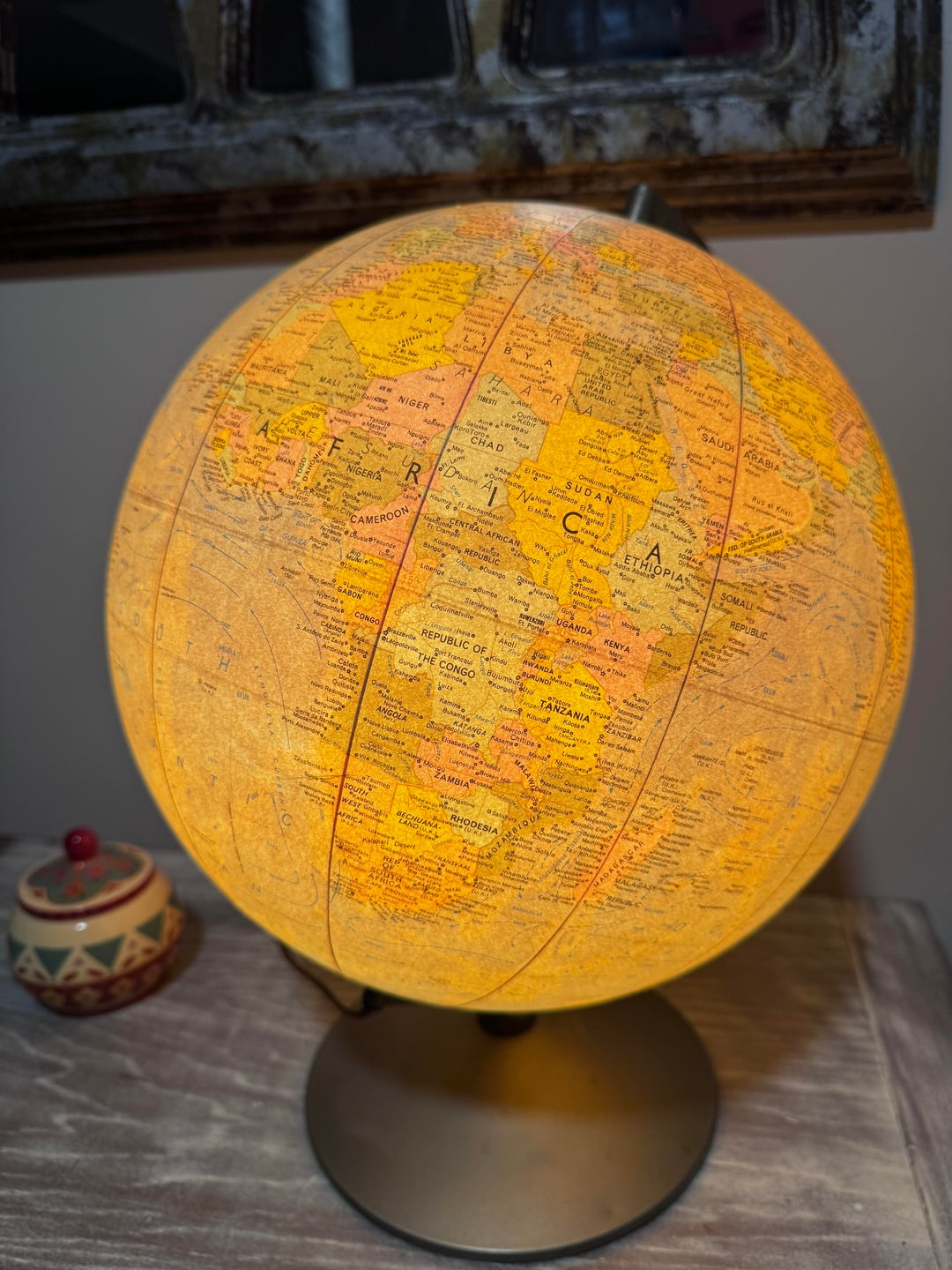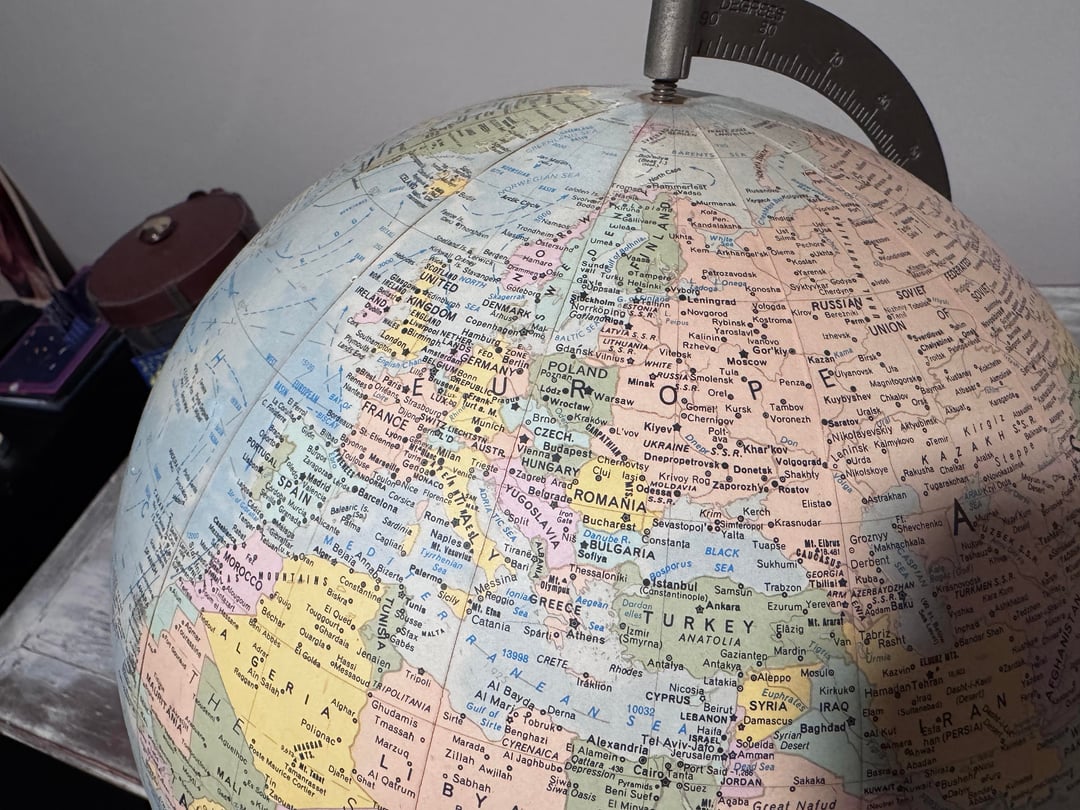 Dating an old globe usually can’t be done by age stamped on it most don’t have a production date printed. Instead, experts look at the place names and borders printed on the map to estimate when it was made. For example, if it shows USSR it’s from 1990 or earlier, if it shows British Honduras instead of Belize it’s likely pre‑1981, and older colonial names like Persia or Siam point to much earlier dates. You’d need clear photos of the globe to narrow it down, but identifying obsolete countries/places is the key to estimating the age.