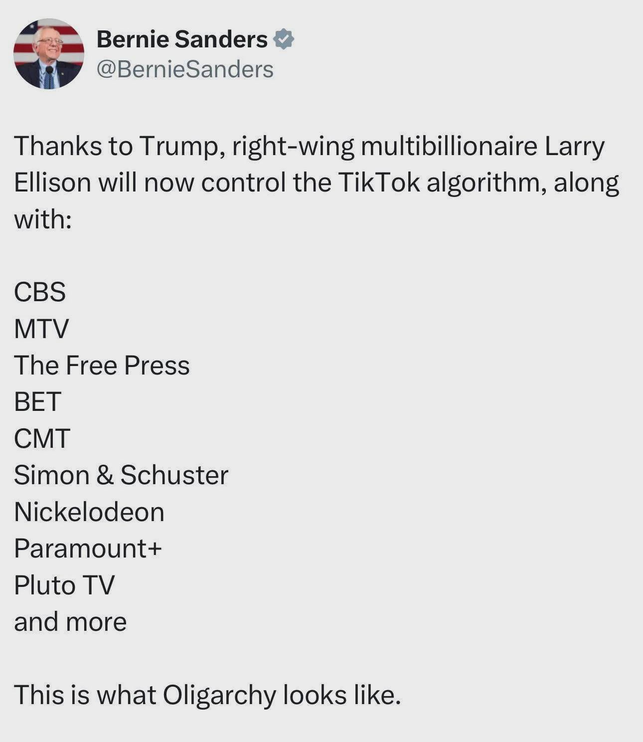Those are all just subsidiaries of Paramount. The previous owner (Shari Redstone) also controlled those companies. Why didn’t Bernie care then?
