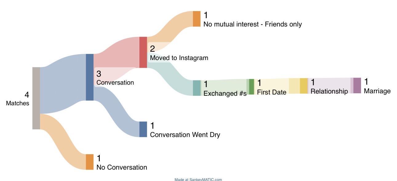 I also met my wife on Hinge, with similar statistical results to you. However, I proposed to her after 2 years. Not 4 months. God damn.