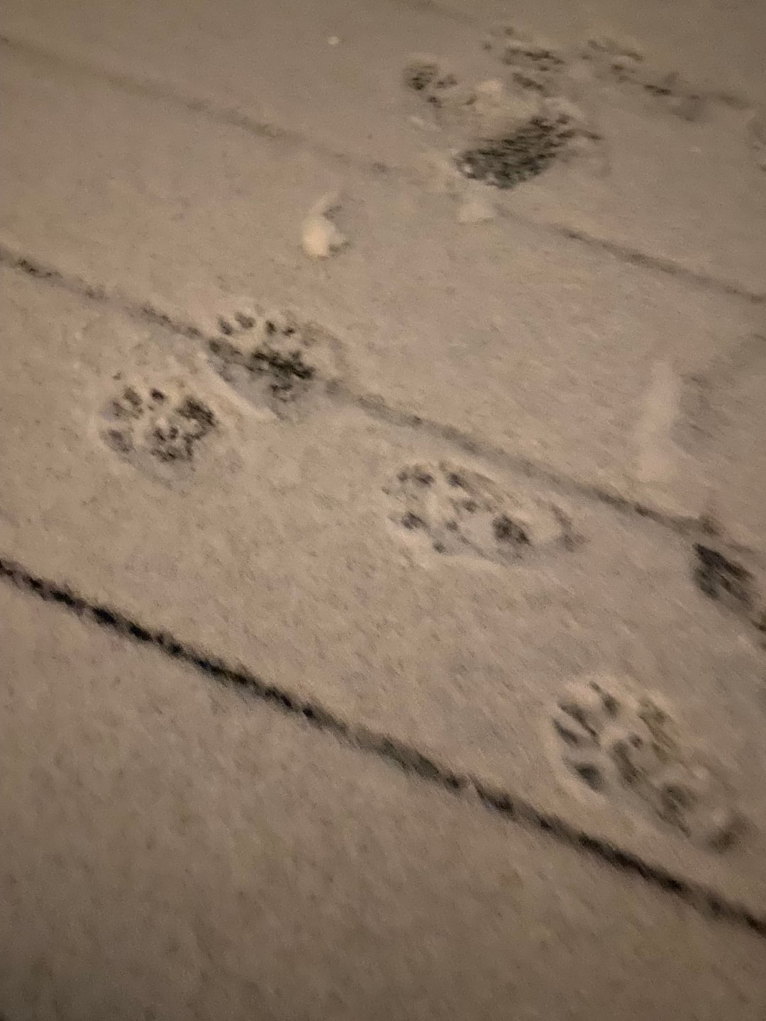 1. Raccoon. Depending were you live. Because you can see claws it’s not a Luchs or other cat.