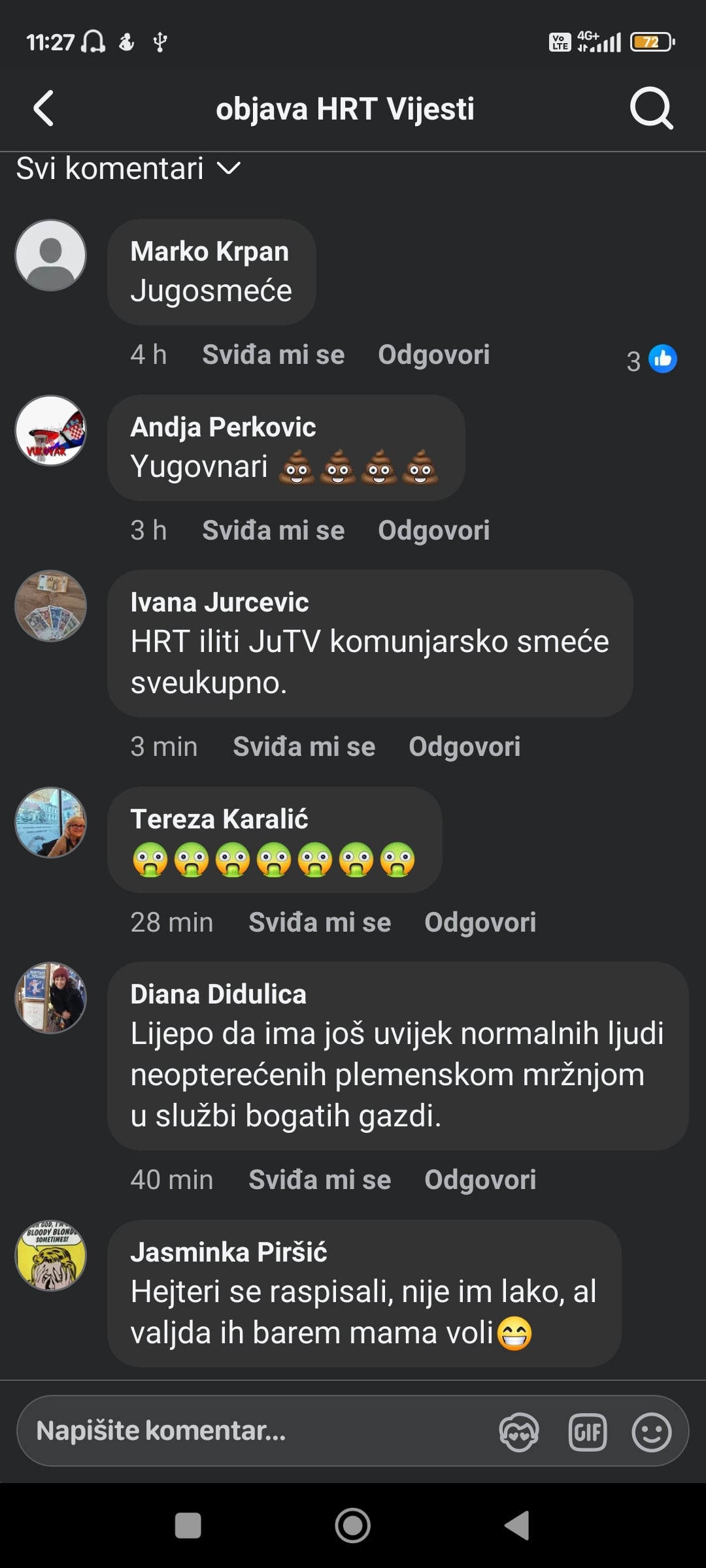 Pa ljudi danas kod nas online hejtaju sve, doslovno ne postoji objava igdje o bilo čemu da nije barem 95% hejt komentara. Ta sranja uopće ne treba čitati, plus stvarno bi trebalo zabraniti korištenje Fejsa ljudima starijima od 40.