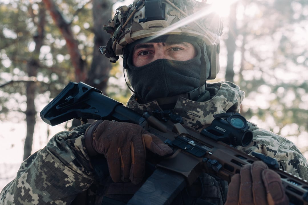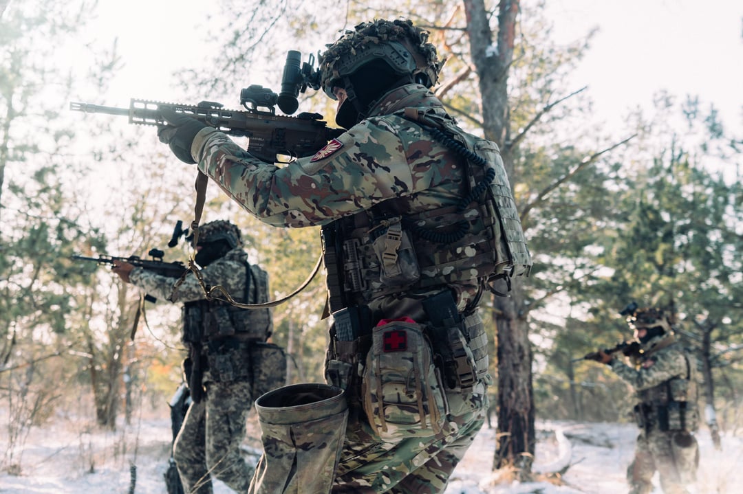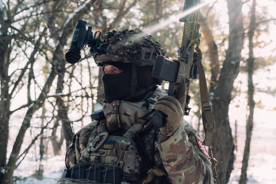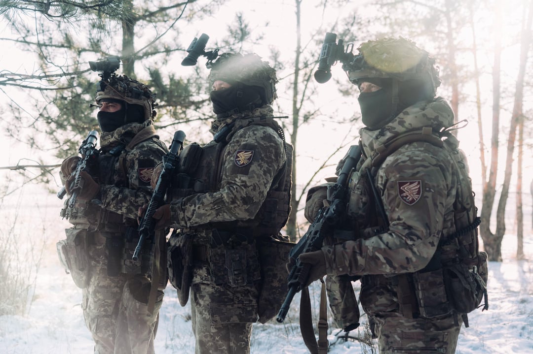 Fallschirmjäger der 95. Separaten Polesischen Luftangriffsbrigade – des 8. Luftangriffskorps – innerhalb der Luftangriffsstreitkräfte der Ukraine (AAFU).