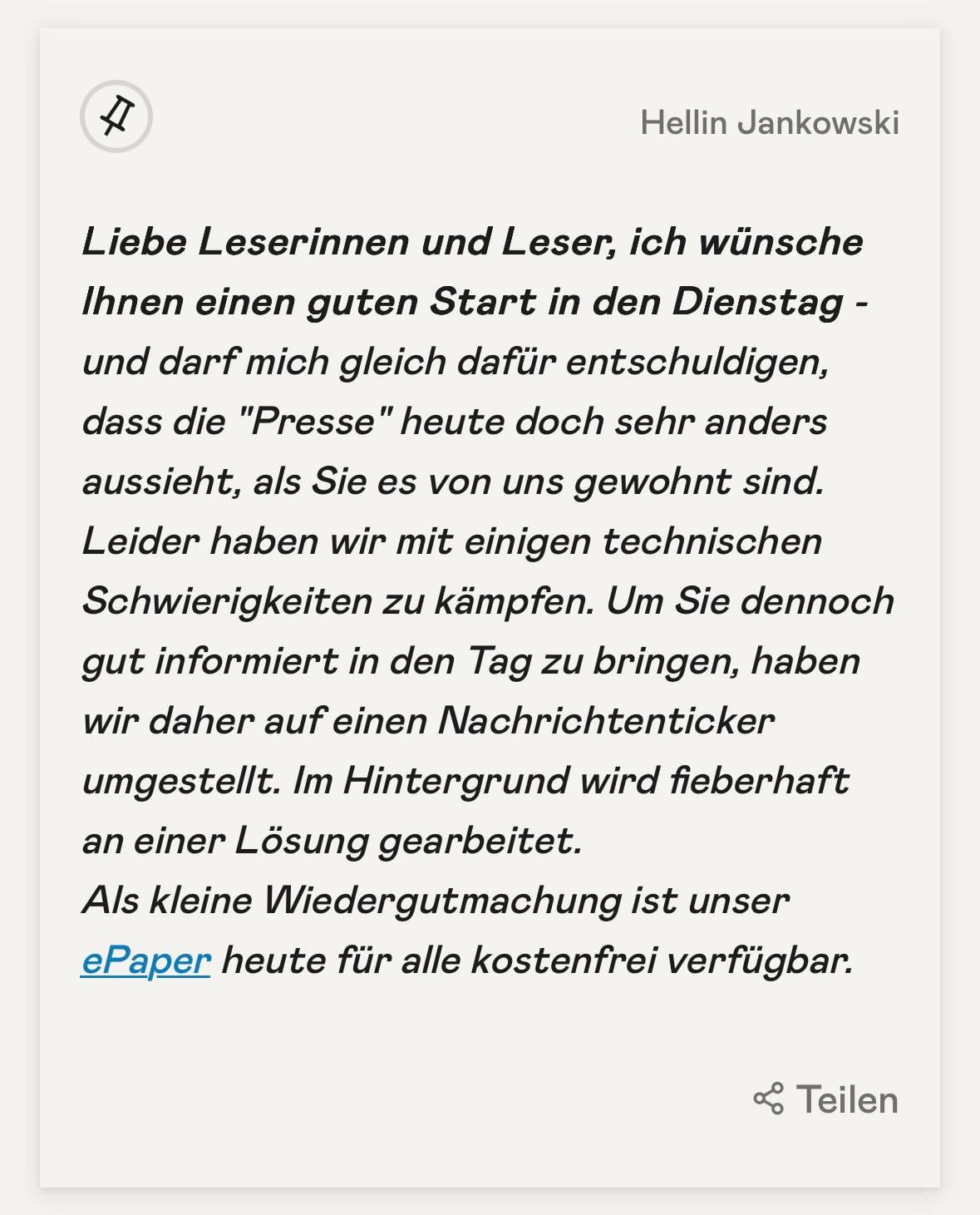Die Presse hat gerade technische Probleme auf ihrer Website https://www.diepresse.com/