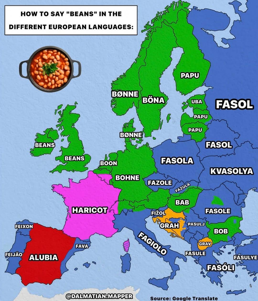 in addition to map being generally incorrect, in slavic languages „fasol“ is a specific type of beans while english word is sort of umbrella term…