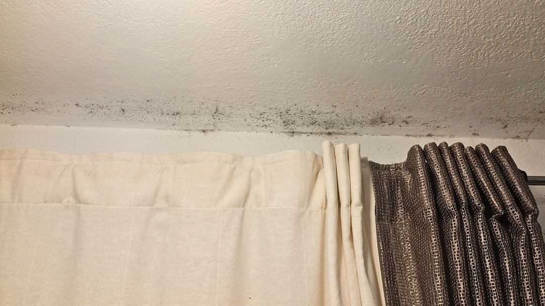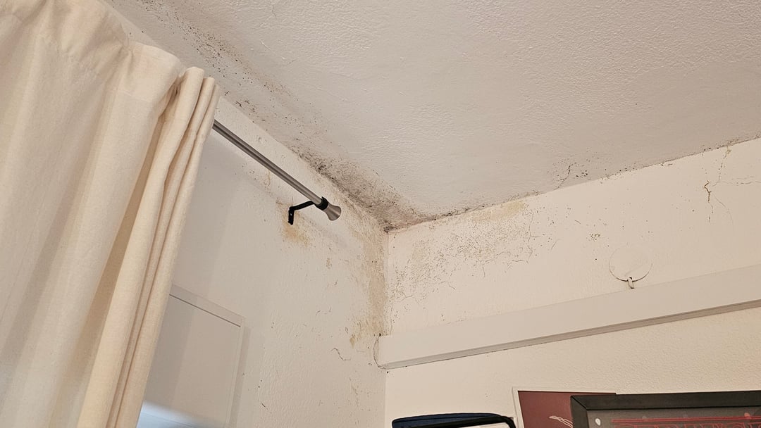 Zaboravi špricanja i krečenja. To je samo sakrivanje simptoma, a ne rješenje problema. U normalnoj državi, ako plaćaš stanarinu, ovo je za tužbu stanodavcu ako ne riješi. Traži da se to riješi. Problem je u termoizolaciji krova. Ovo je otrovno i nemoj umanjivati problem jer je ozbiljan.