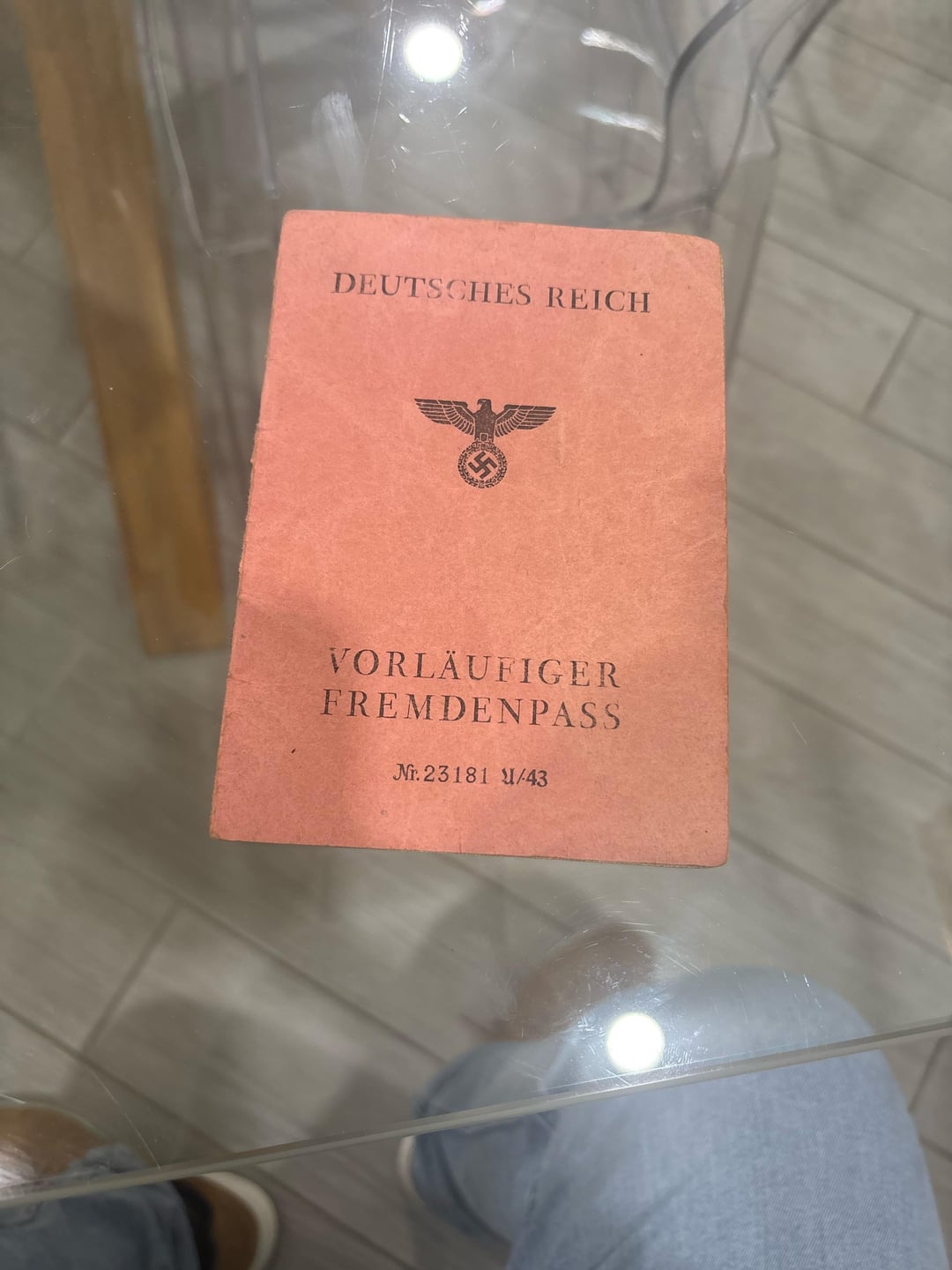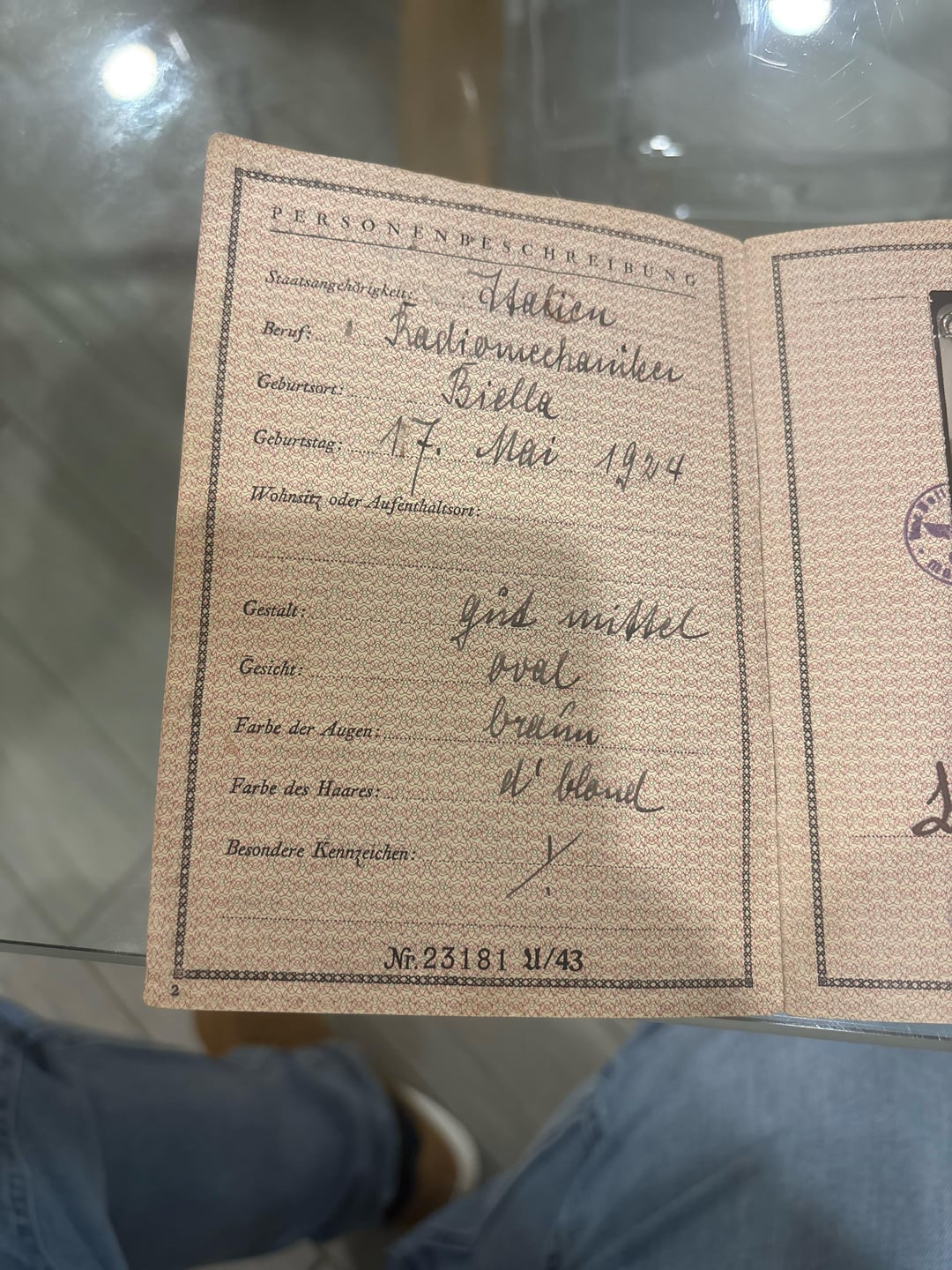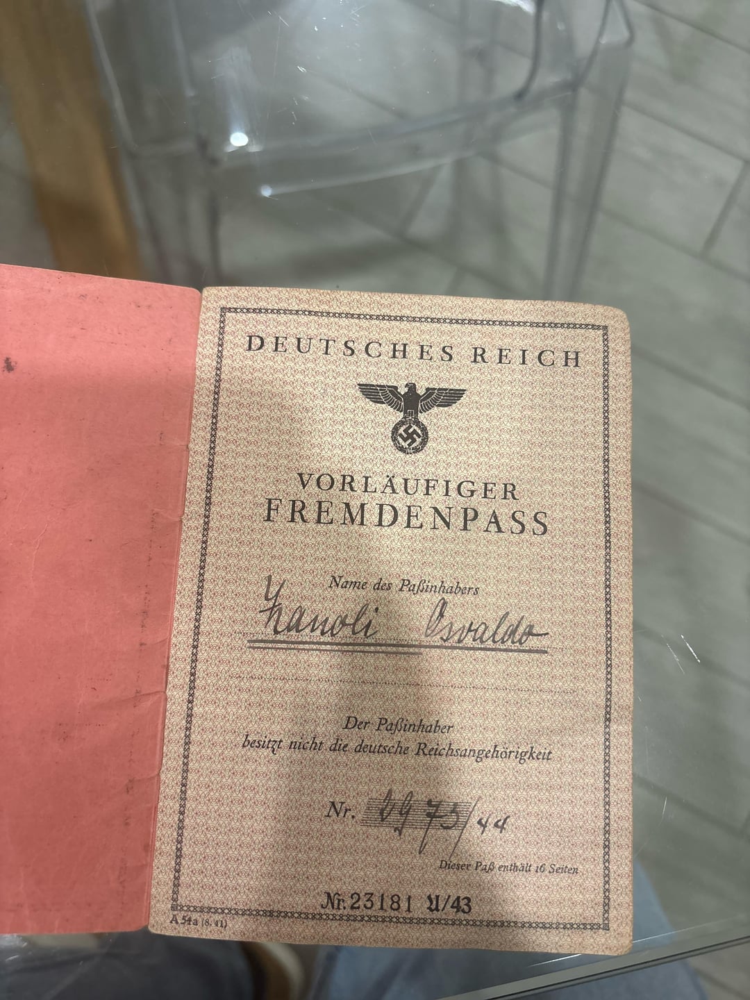 It’s a passport for foreigners. It states that he doesn’t have German citizenship and that he works as a radio mechanic.