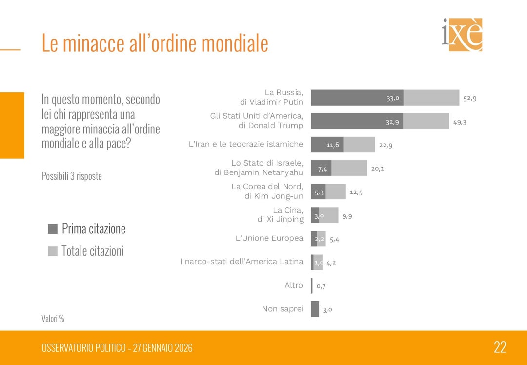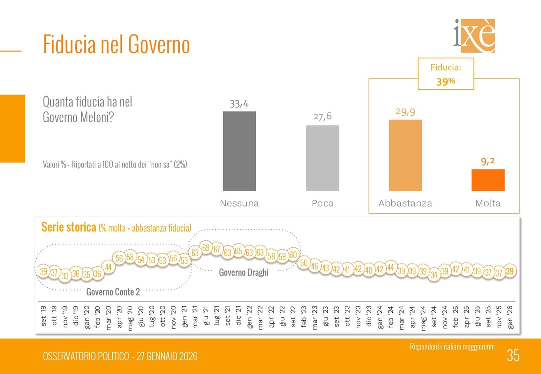 Dies sind nur minimale Hochrechnungen, das gesamte PDF hat 65 Seiten und ist aufgrund seiner Detailliertheit sehr interessant, Sie können es hier finden: https://www.istitutoixe.it/wp-content/uploads/2026/01/Ixe-Politico_27Gen2026.pdf