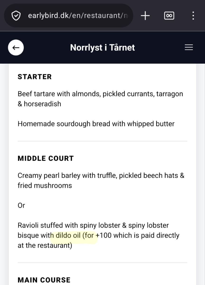 Fejlene til trods, er det da også en okay-klam menu. Hvad med at få noget rigtigt mad på bordet?