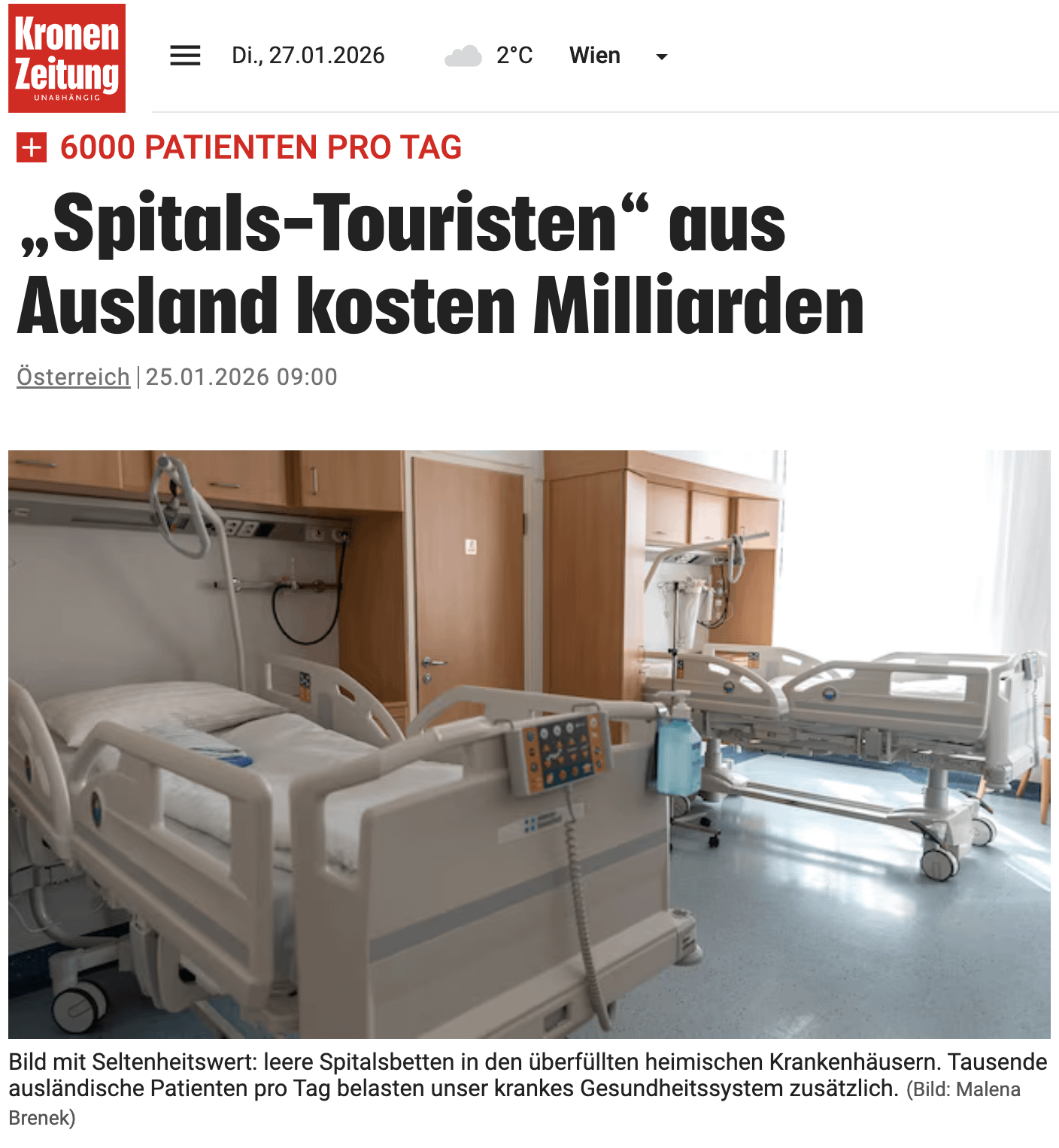 Faktencheck mit Quellen: https://kontrast.at/krone-auslaendische-patienten/