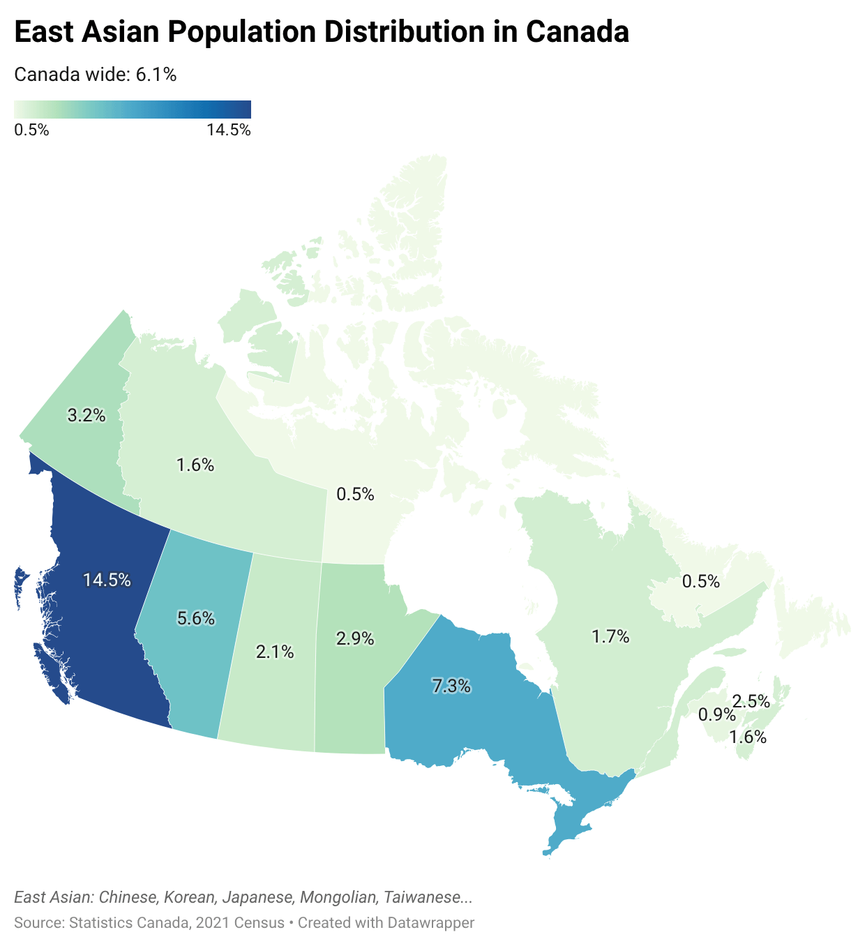 Why is it so high, as a British Columbian? BC in particular has long standing Chinese roots going way back to the labour for roads and railroad building during the gold rush and had a major migration of people from Hong Kong when it was given up by the British. Chinese roots in my community stretch back just as far as many of my Scottish ancestors and are a cornerstone of the community.